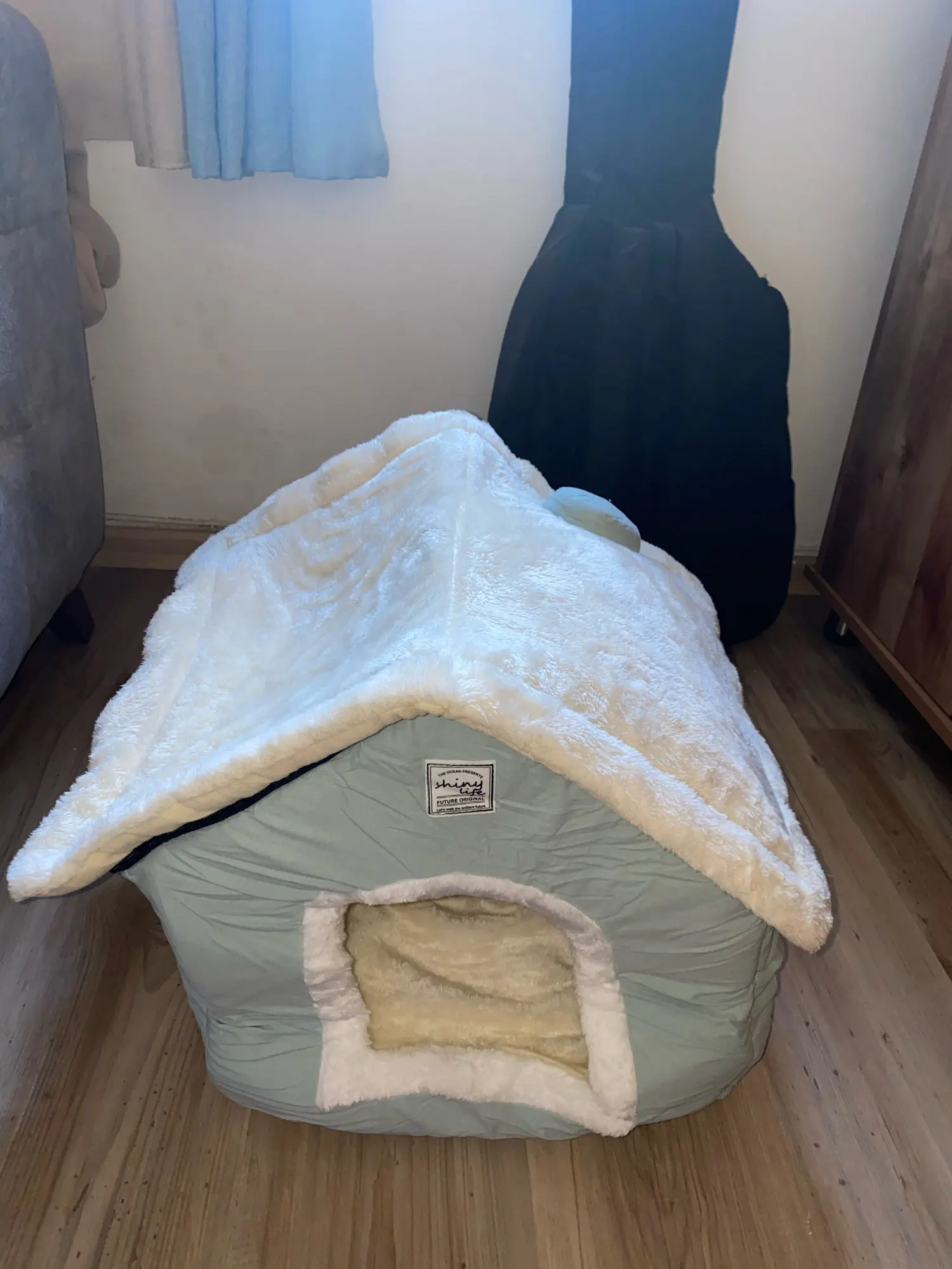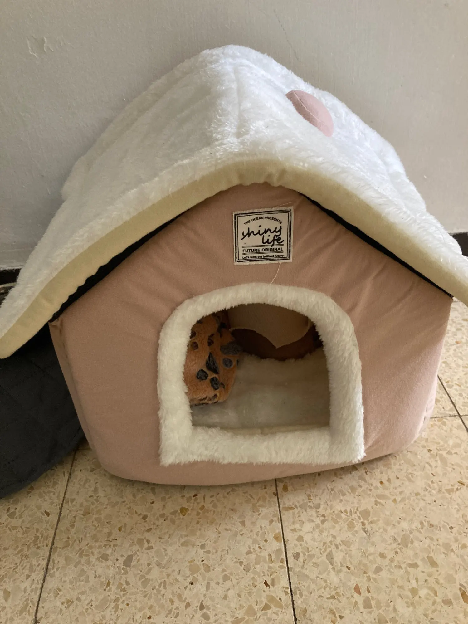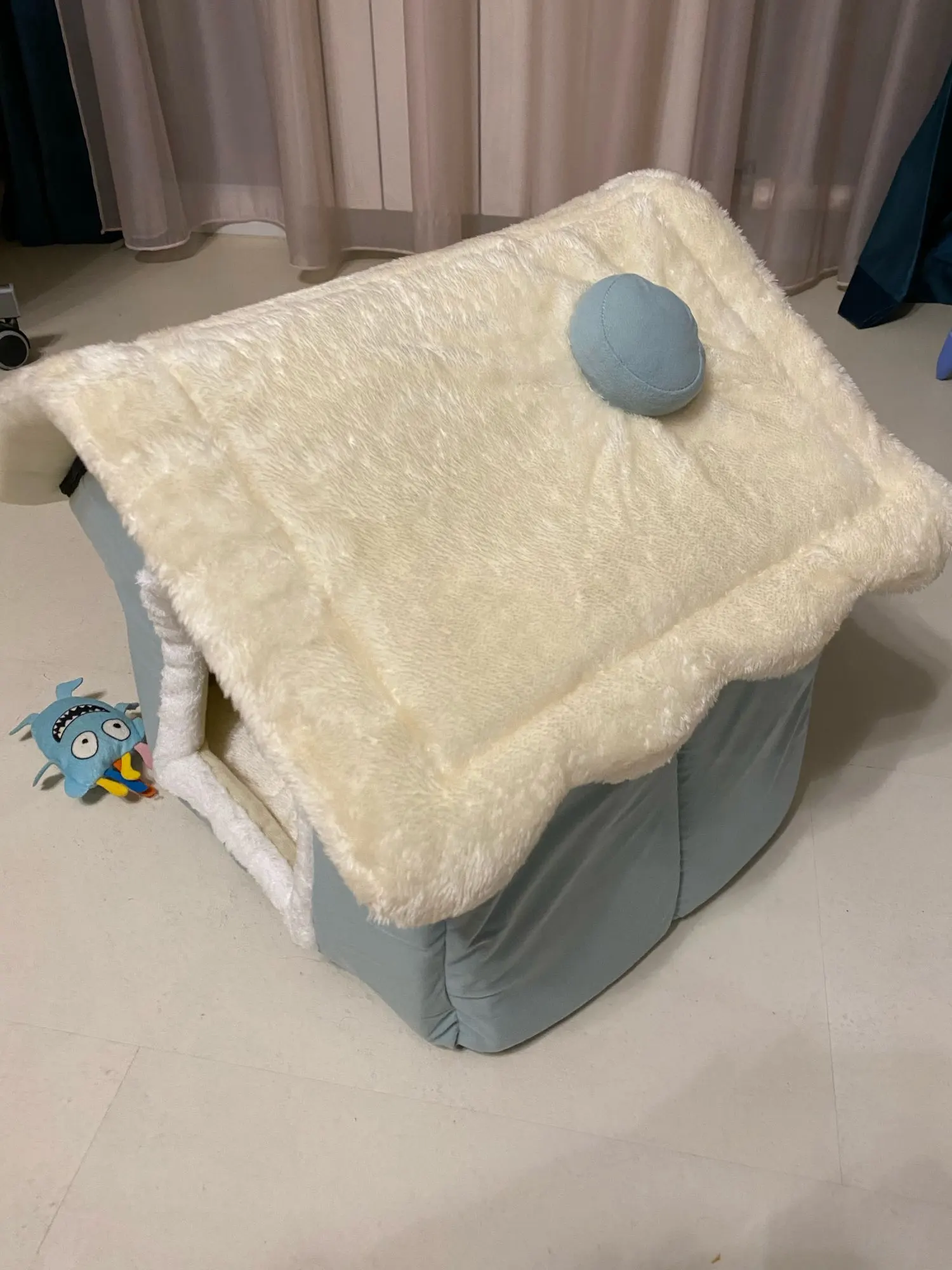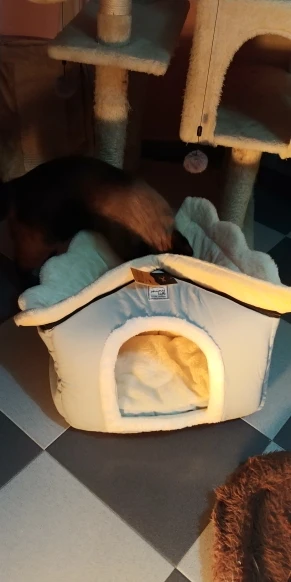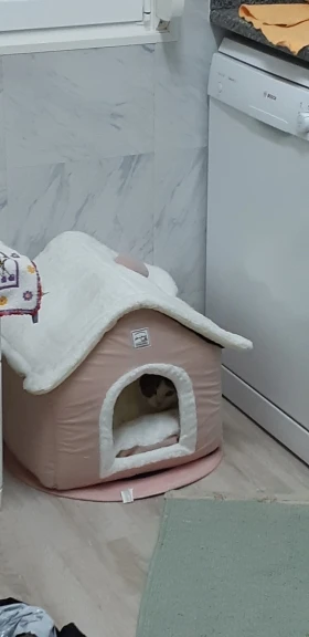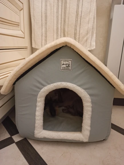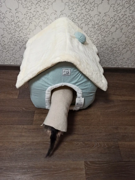 домик отличный мягкий красивый только запах присутствует не очень приятный и наша собачка пока не хочет в него заходить