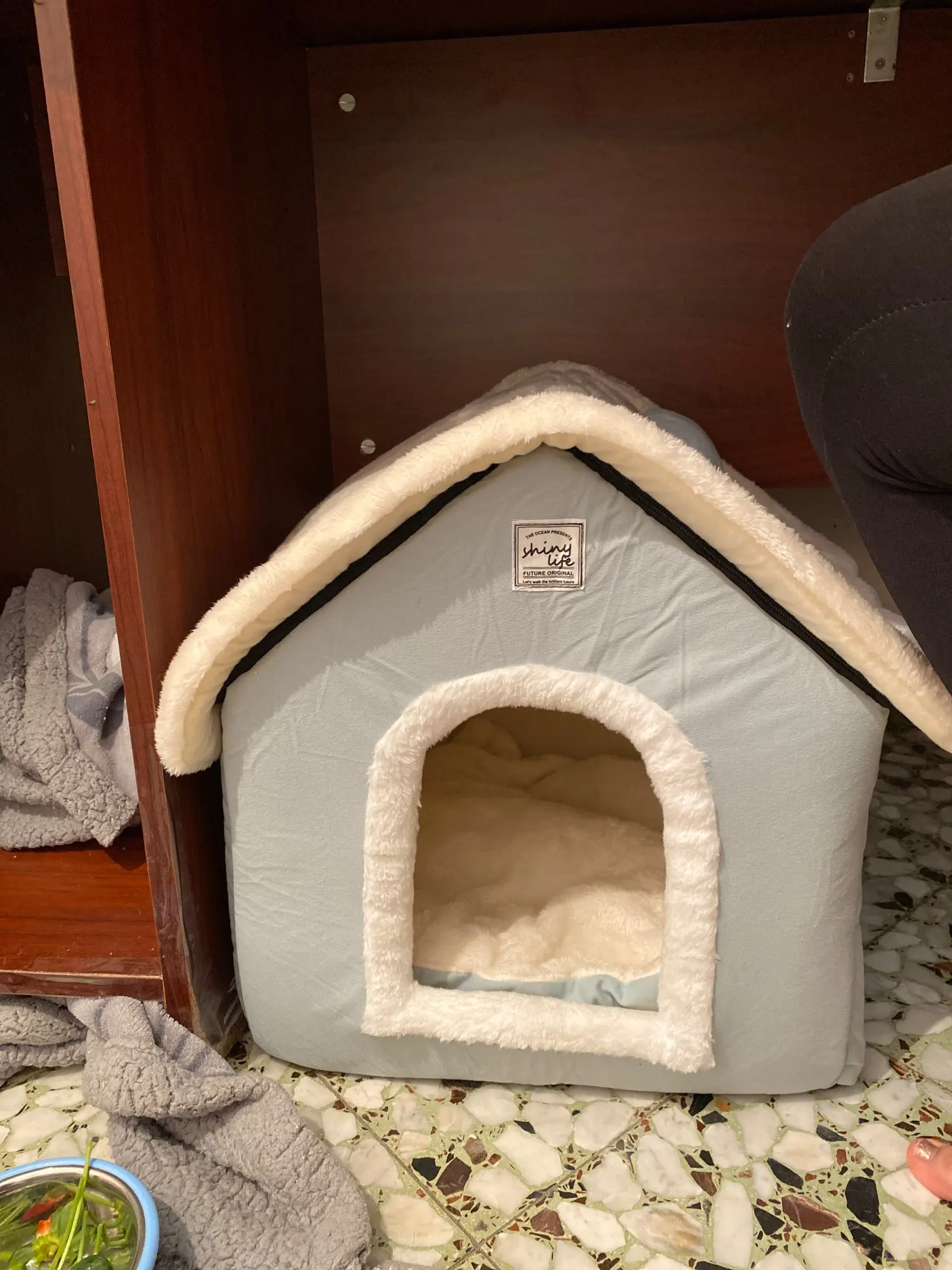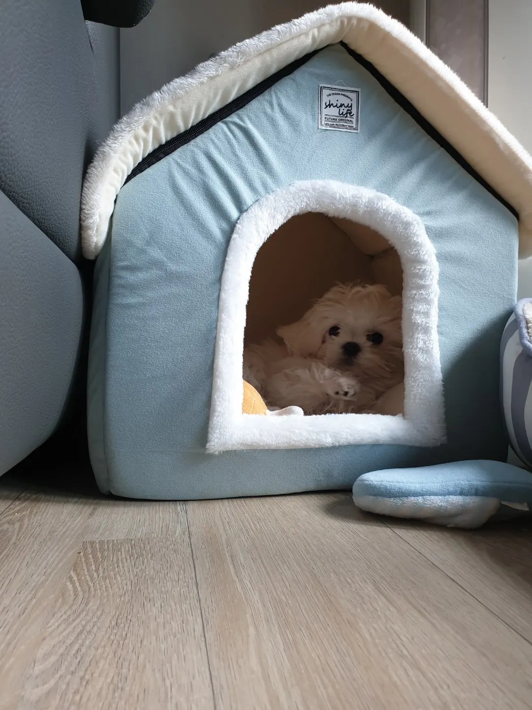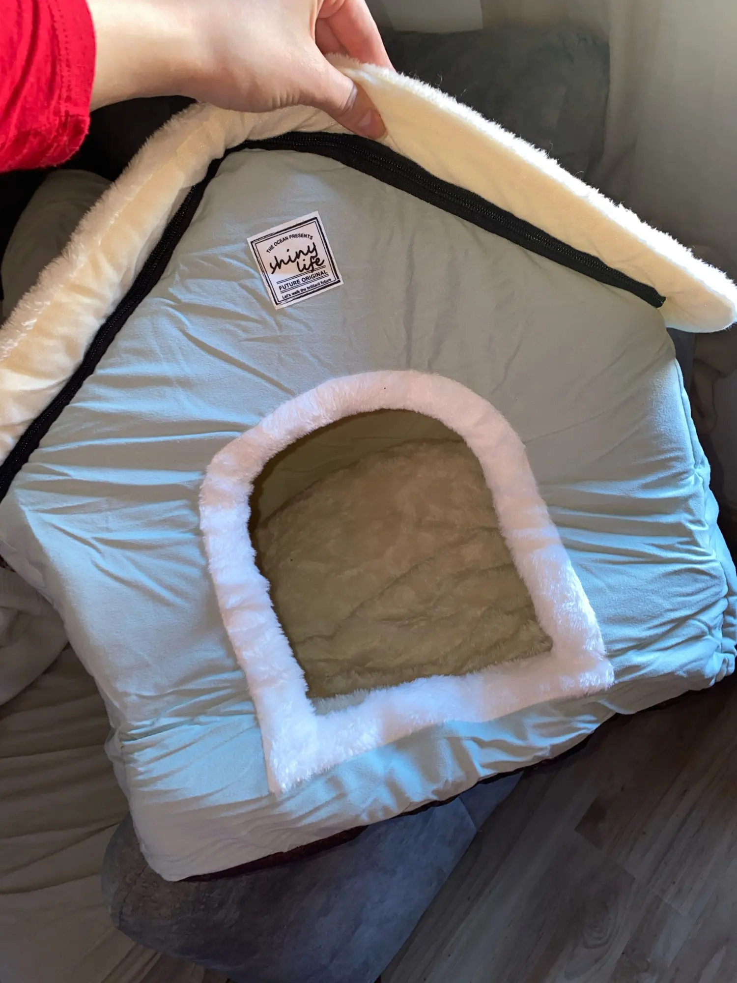 домик отличный мягкий красивый только запах присутствует не очень приятный и наша собачка пока не хочет в него заходить