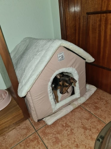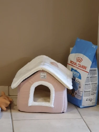 Дом красивый, как на фото. Тем не менее, у меня есть 4 кг Джека Рассела. Я взял самый большой размер, и как только он вырастет немного больше, он не сможет войти.