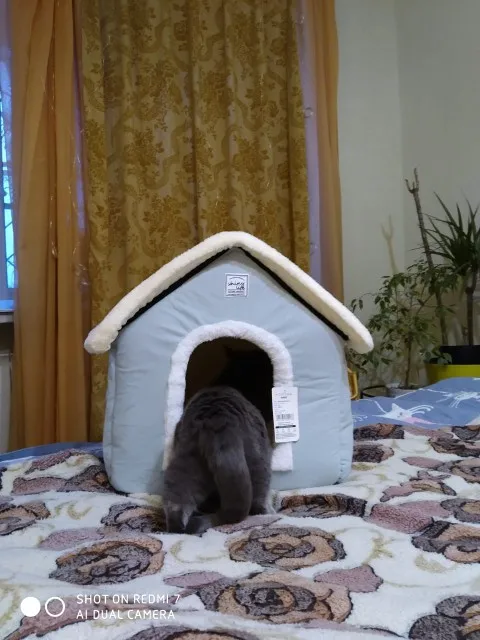 Будьте готовы к тому, домик приедет в ооочень компактном сложенном виде:) Фото к сожалению не сохранилось, ткань нужно будет немного выгладить и дать домику постоять выпрямленным) В остальном, если не брать сложности транспортировки, все отлично! И главное не забудьте посмотреть размер, пришлось делать возврат и заказывать самый большой для кошки. И наверно самое главное--не пытайтесь сами туда кошку пихатьпервый раз можно, чтобы показать, а вот дальнейшие попытки будут неудачным... Спустя два дня кошка зашла сама из любопытства) Продавецу спасибо за дизайн!))