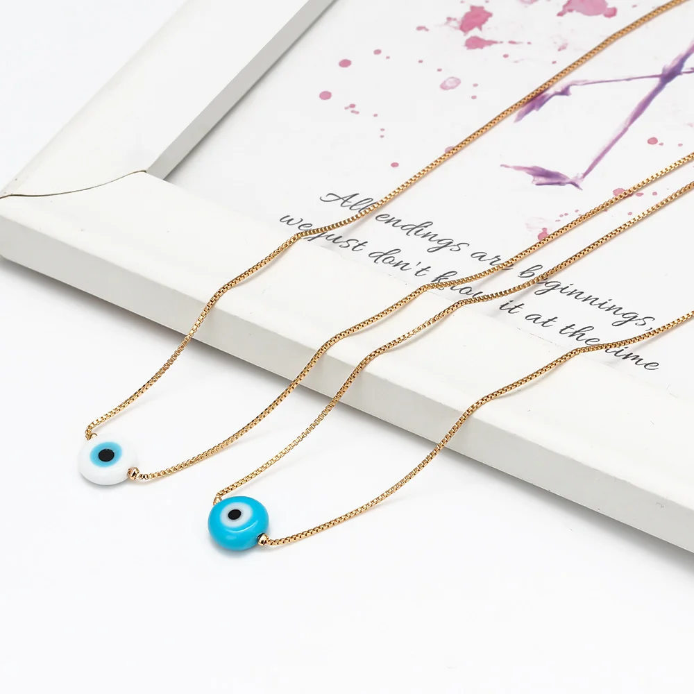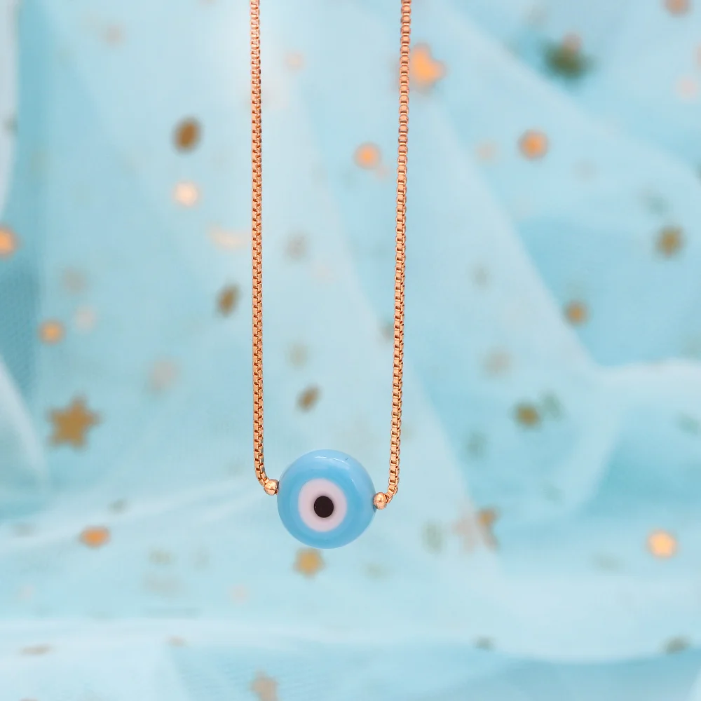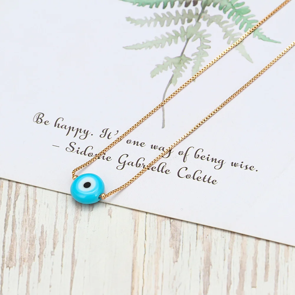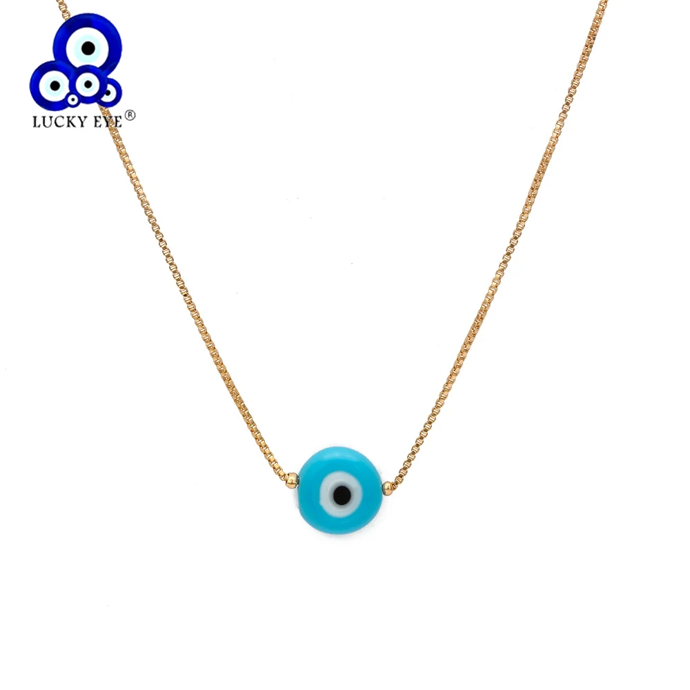 Женское Ожерелье с бусинами Lucky Eye, голубой Турецкий Дурной глаз, медный золотой цвет, длинная цепочка на шею, модное ювелирное изделие для девочек, BE50