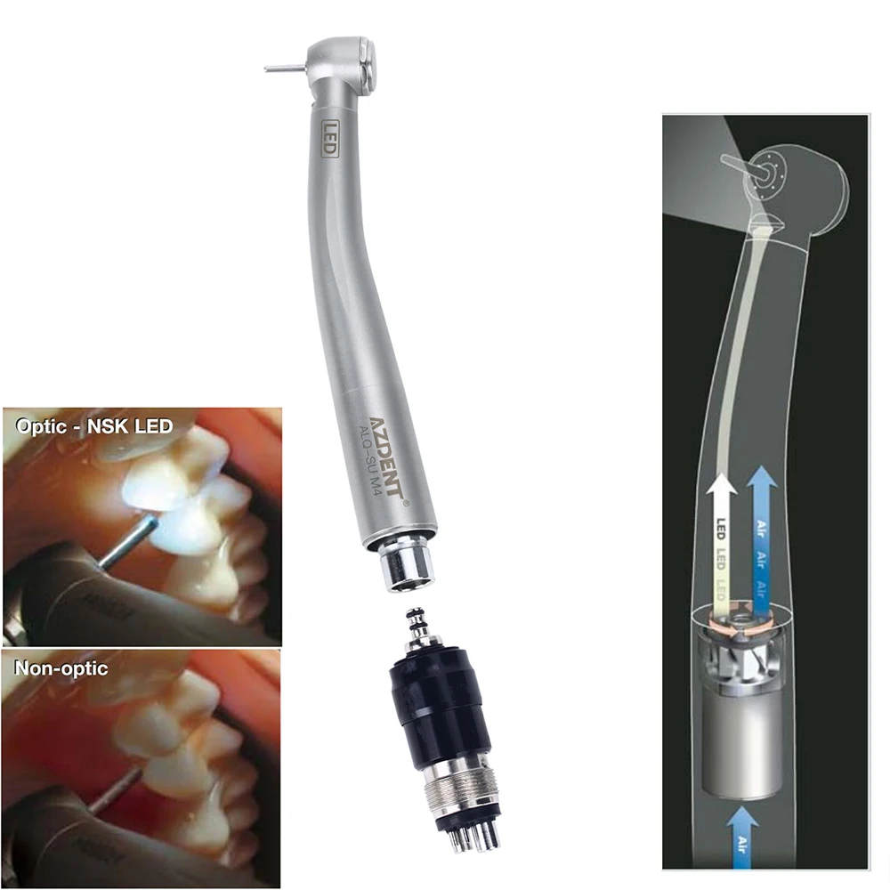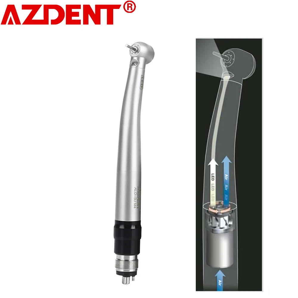 Стоматологический высокоскоростной наконечник AZDENT с 4 отверстиями, светодиодный электронный генератор, быстрая муфта, 4-сторонняя распылительная чистящая головка