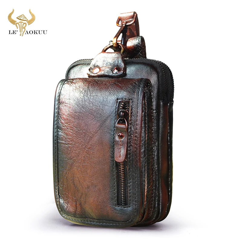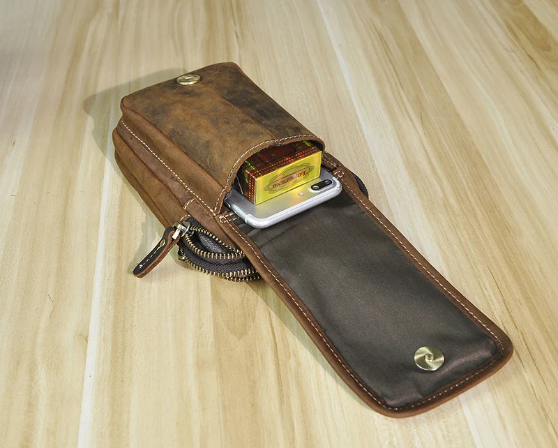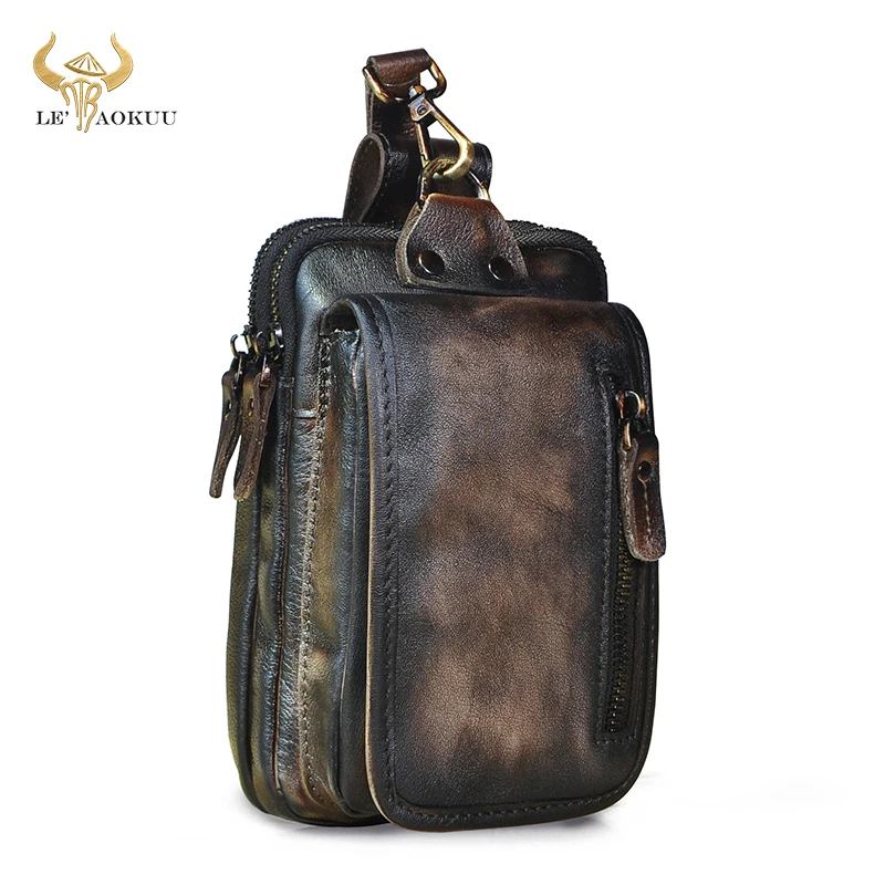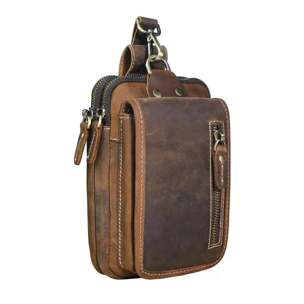 Роскошная мужская повседневная сумка из натуральной кожи, винтажная маленькая поясная сумка с крючком, поясная сумка, чехол для сигарет 7 дюймов, чехол для телефона 1609