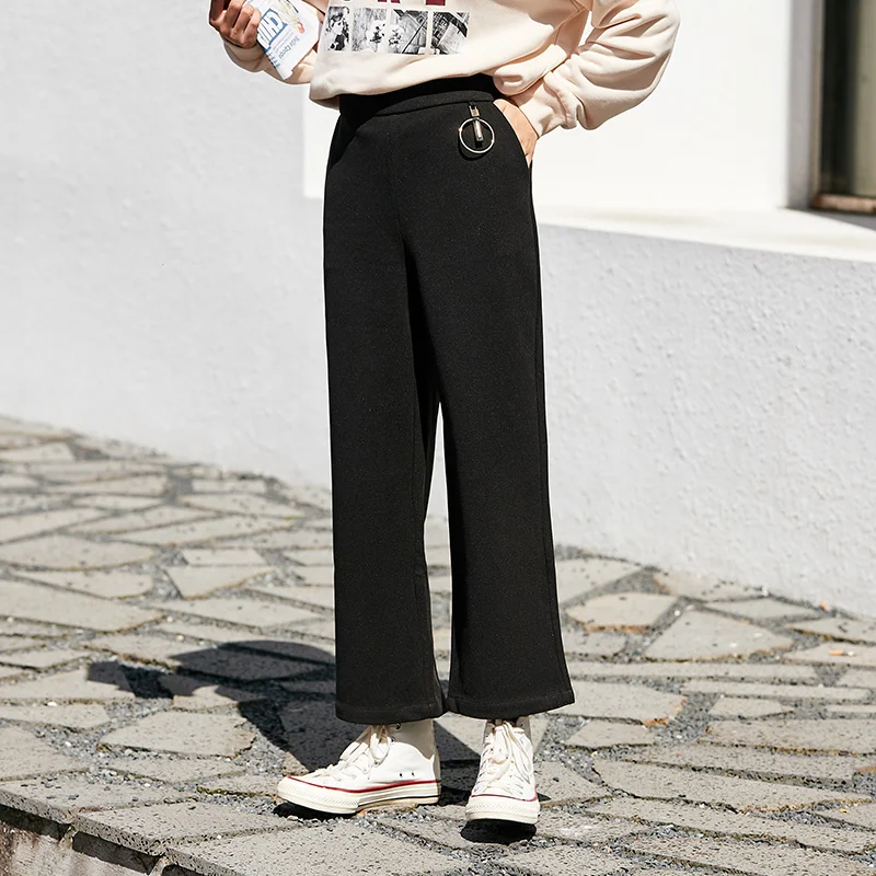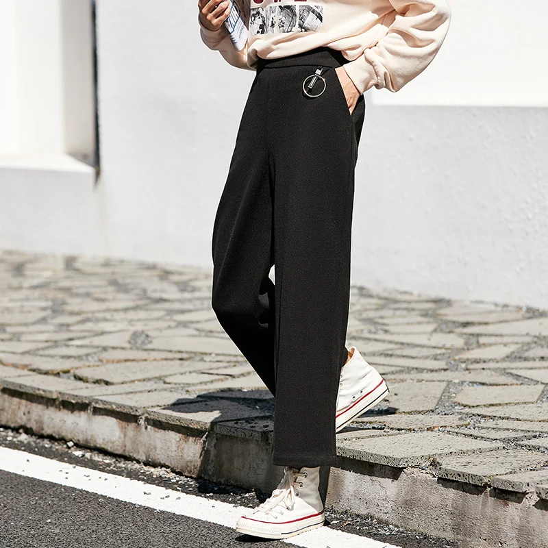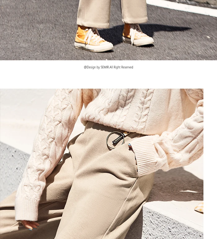 Брюки SEMIR женские с широкими штанинами, повседневные драпированные черные брюки с завышенной талией, Осень-зима 2021