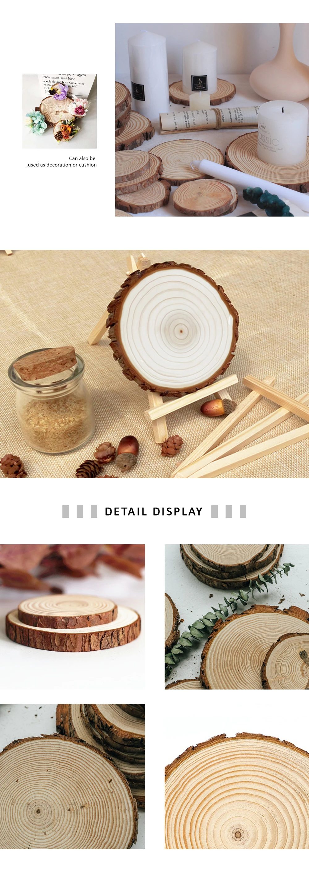 1: эти пустые круглые украшения изготовлены из древесного материала, который является прочным и легким,