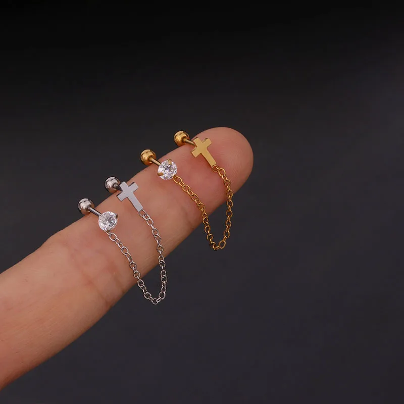 1 шт. Нержавеющаясталь двойной штанга гантельного типа с тассель цепь Cz серьги, Надеваемые На ушной хрящ для Для женщин спирали Завинчивающаяся задняя крышка, серьги ювелирные изделия пирсинг уха