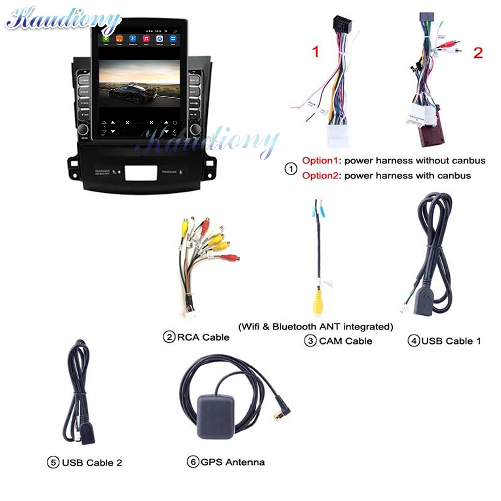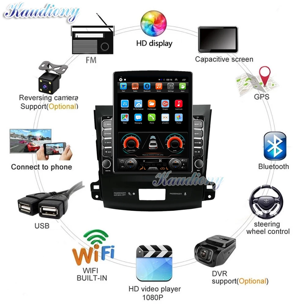 Автомагнитола Kaudiony, 9,7 "Tesla Style Android 10,0, Автомагнитола для Mitsubishi Outlander, Dvd-плеер с GPS-навигацией, DSP, 4G