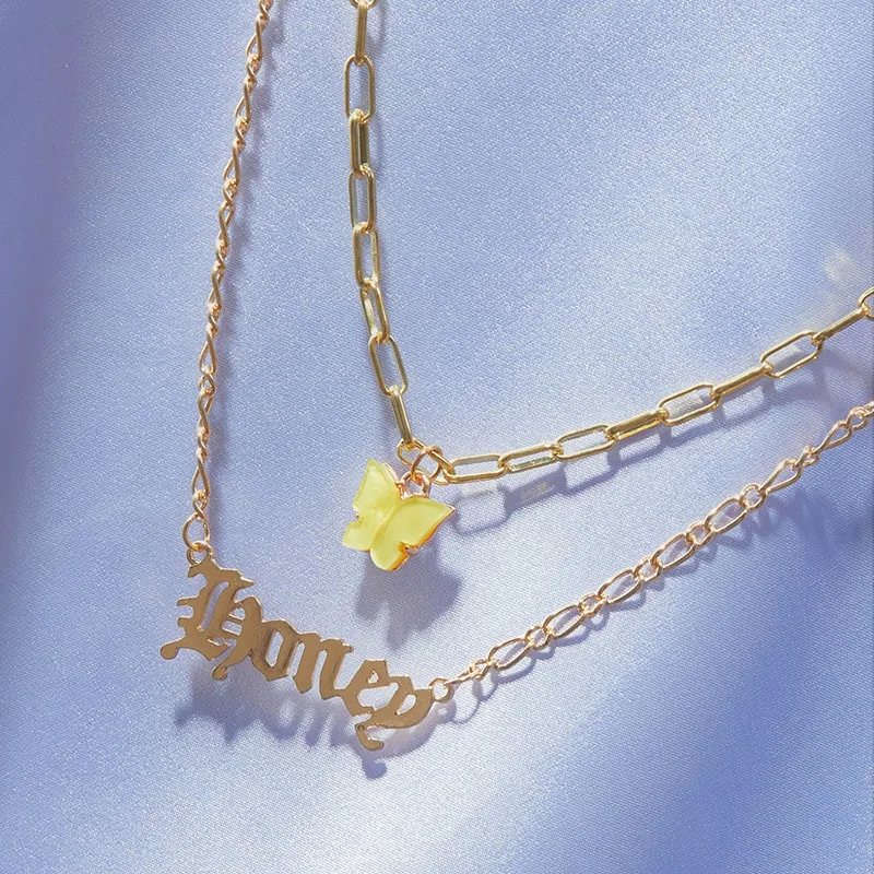 Популярные ожерелья с бабочками для девочек, модные Многослойные ак...
