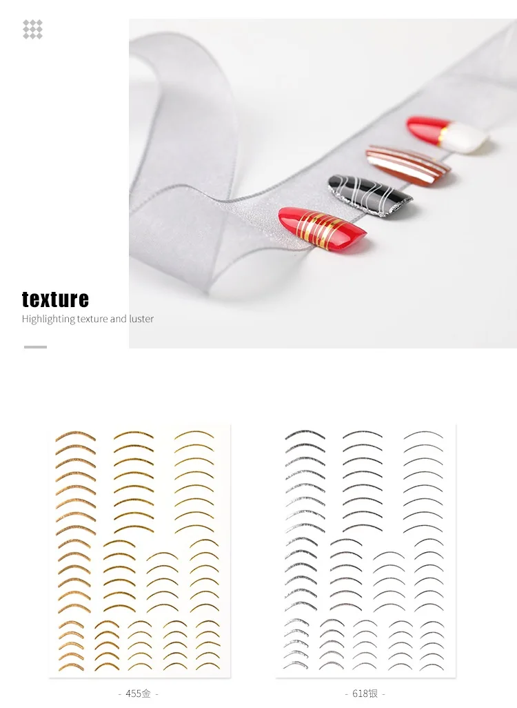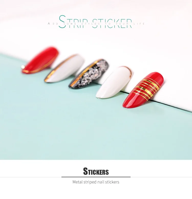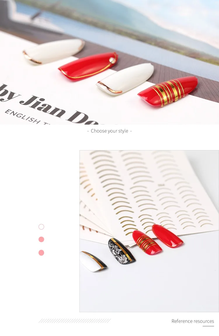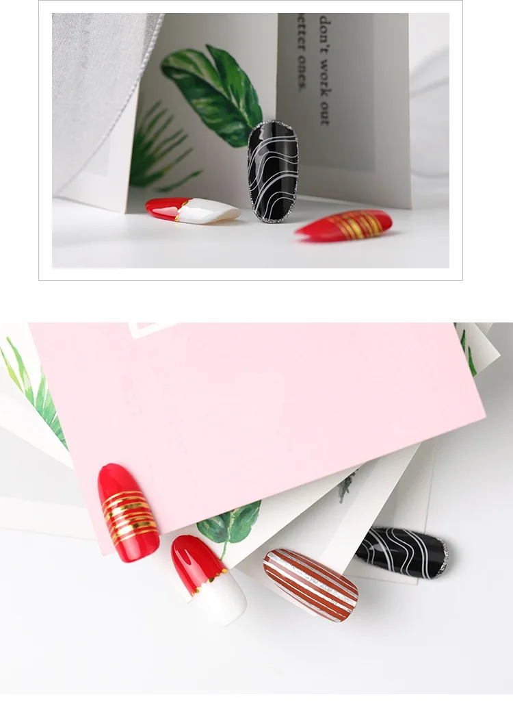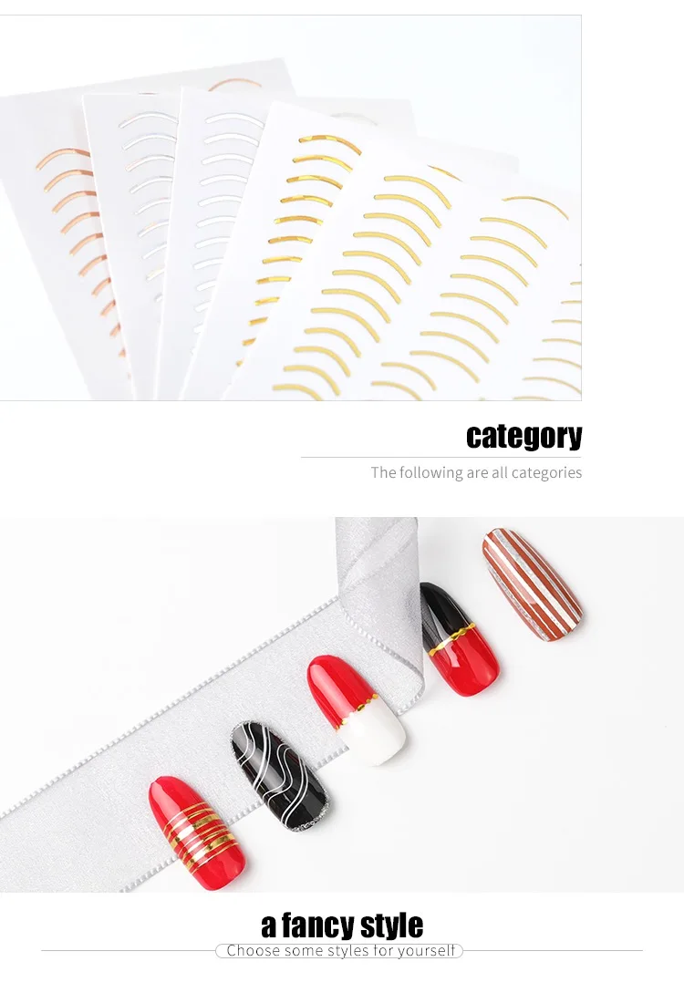 Клейкие наклейки разных размеров для маникюра, украшения для ногтей, 3D наклейки для ногтей, золотые, серебряные, черные полоски, металлическая лента