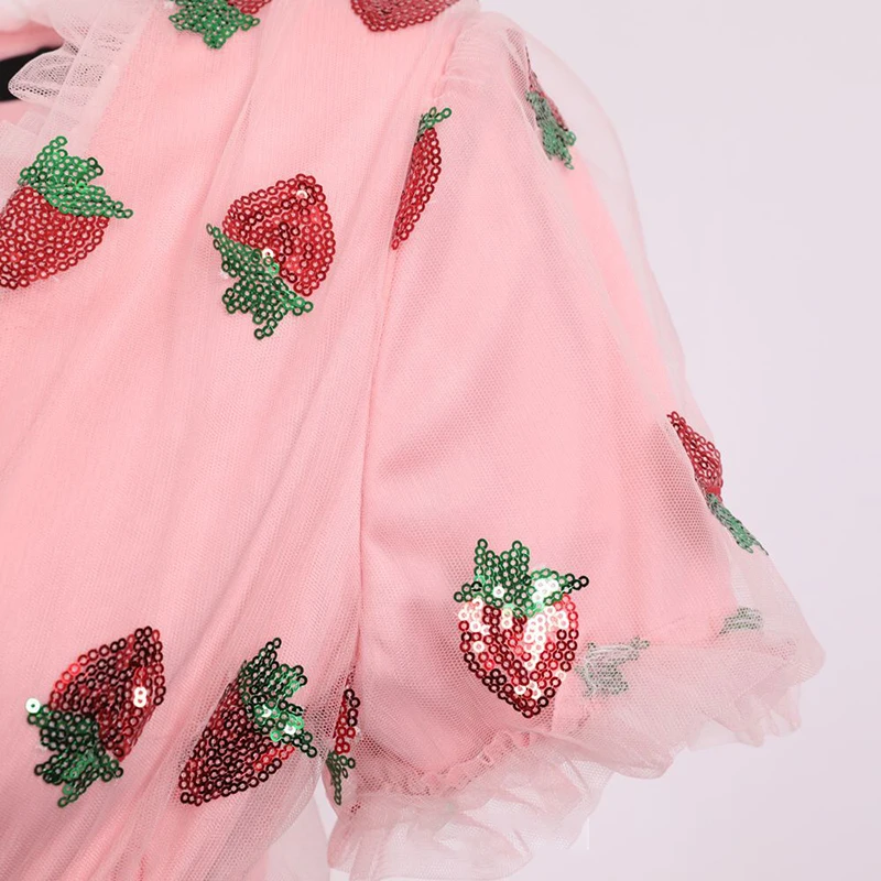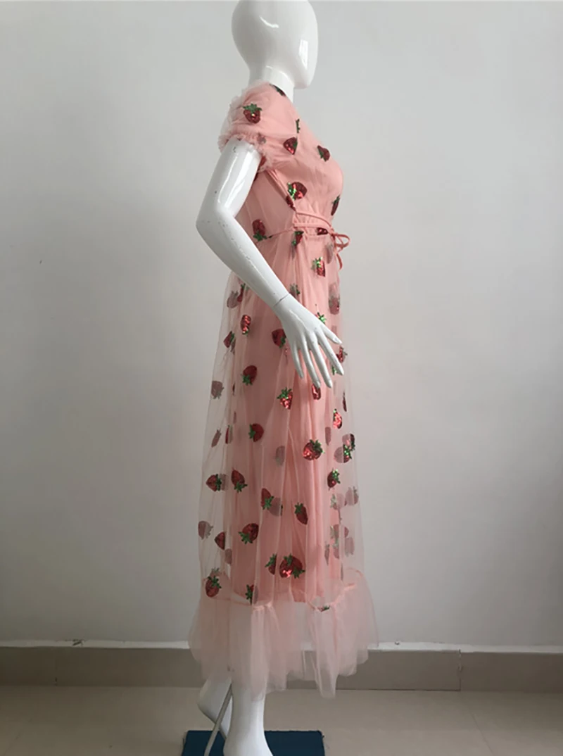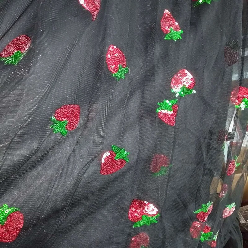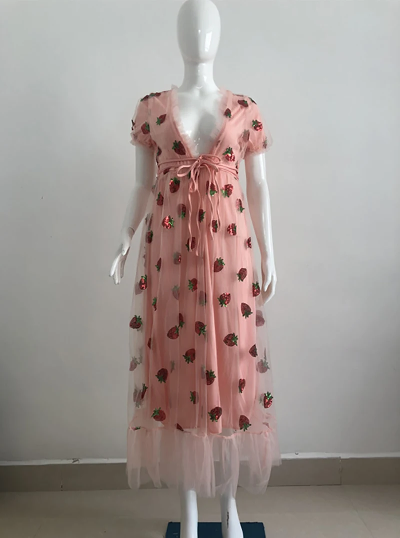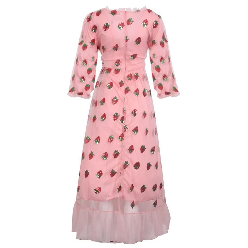 Футболки с короткими рукавами и v-образной горловиной из пряжи и тюля, платье с принтом клубника сексуальные черные розовые середины Длина горячего тиснения элегантное вечернее платье вечерние женская одежда