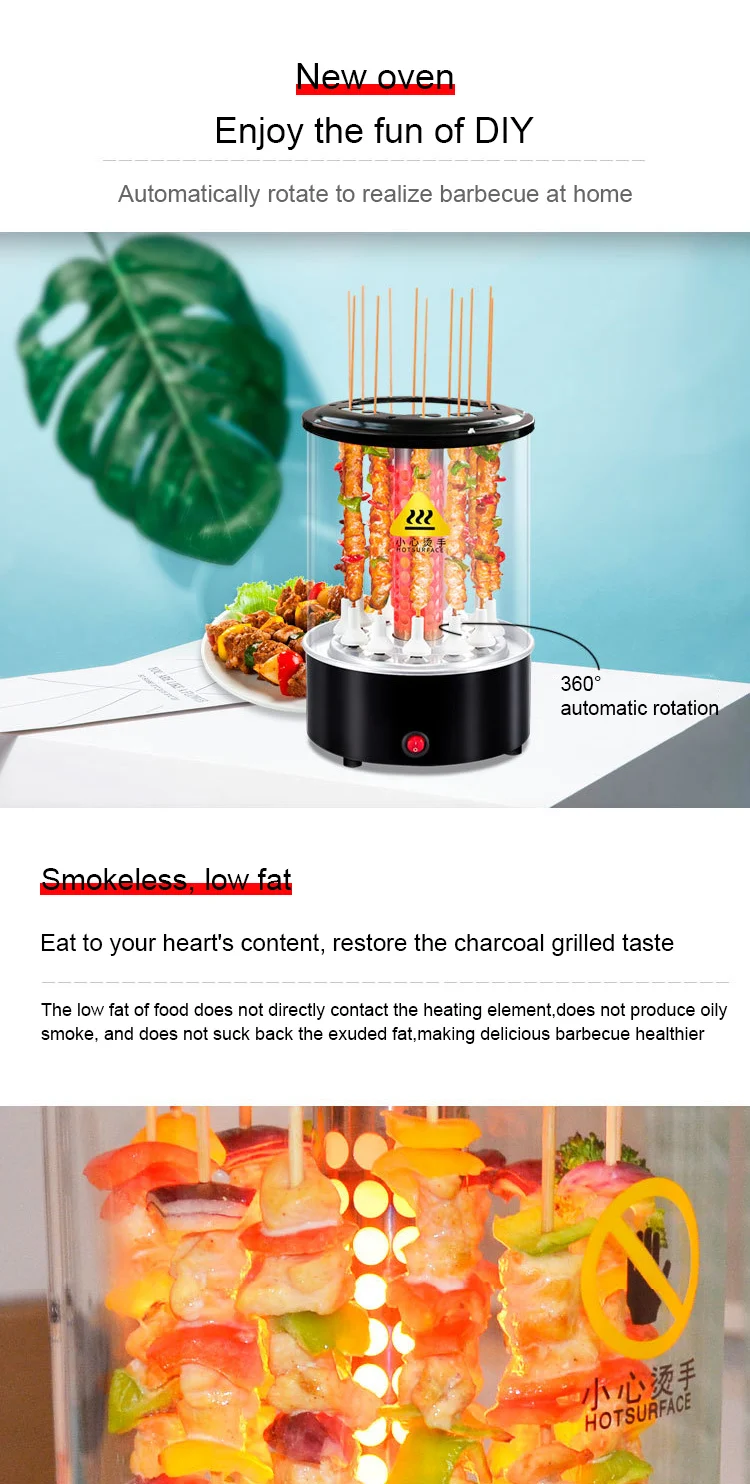 Электрическая гриль-машина для приготовления шашлыка для барбекю, автоматическая вращающаяся Бездымная духовка, для жарки ягненка
