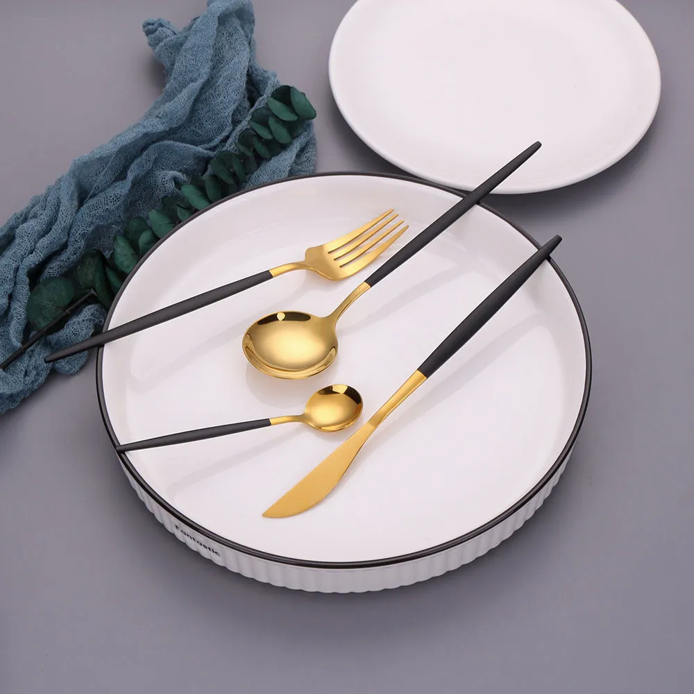 Набор столовых приборов из нержавеющей стали 304, 4 шт., Черное зол...