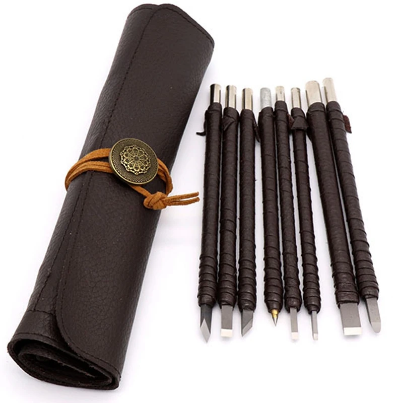 Набор ручных инструментов из вольфрамовой стали, с кожаной ручкой и кожаной сумкой