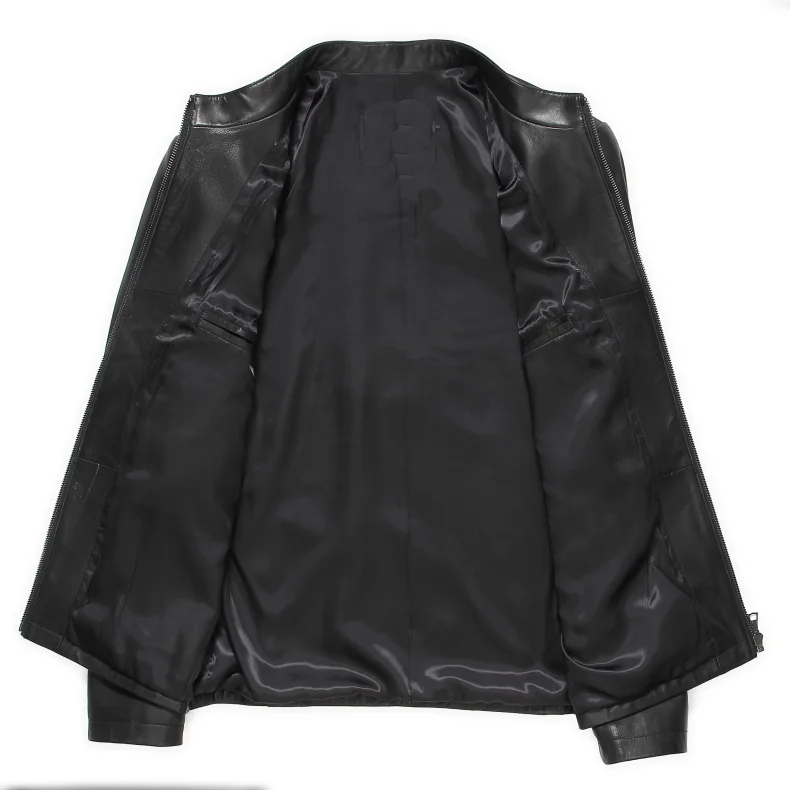 Мужская куртка из натуральной овечьей кожи, повседневная черная осенняя куртка с карманами для мужчин mj18