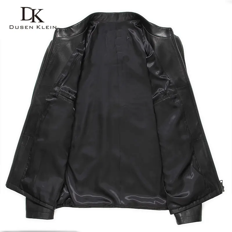 Мужская кожаная куртка Dusen Klein, черная приталенная куртка из на...