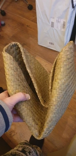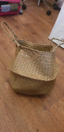 Размер что надо, цвет немного отличается серо зелёные оттенки, одназначто темнее чем у продовца, пришла в сложенном виде, сейчас уже чуть выправилась. Корзинка подайдет только как кашпо или хранение лёгких вещей, тяжести не выдержит