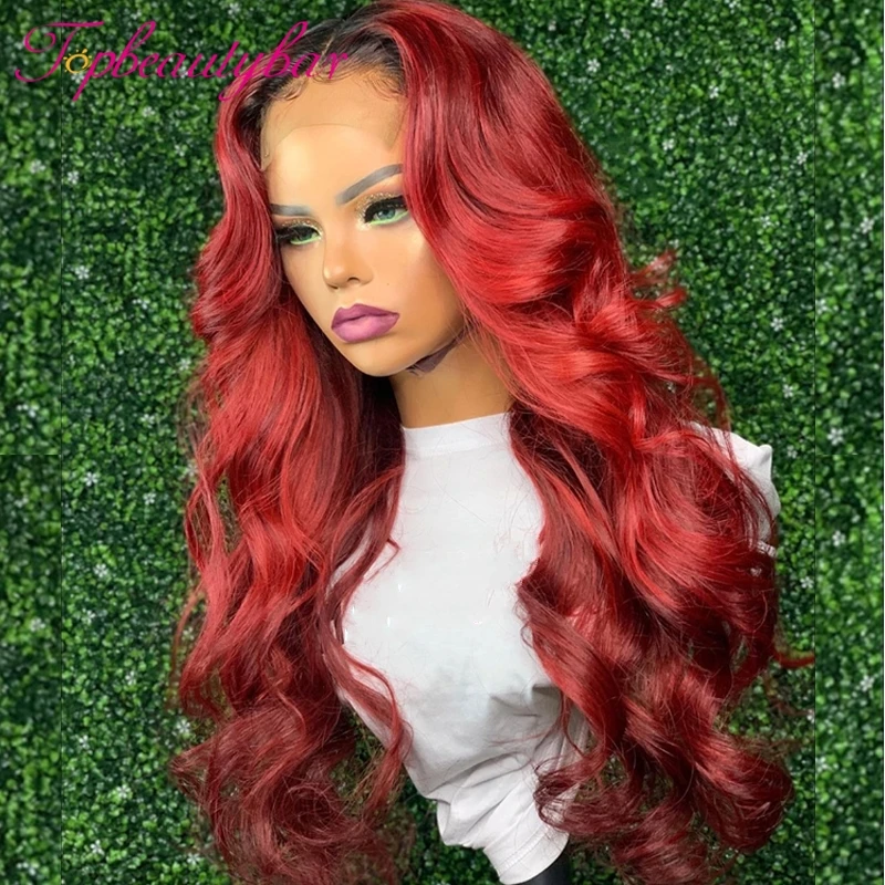 Красный парик с эффектом омбре 13X4 на сетке спереди, плотность 180%, волнистые человеческие волосы, парики для женщин, бразильские волосы без повреждений, цветные красные парики на сетке спереди, человеческие волосы, парики