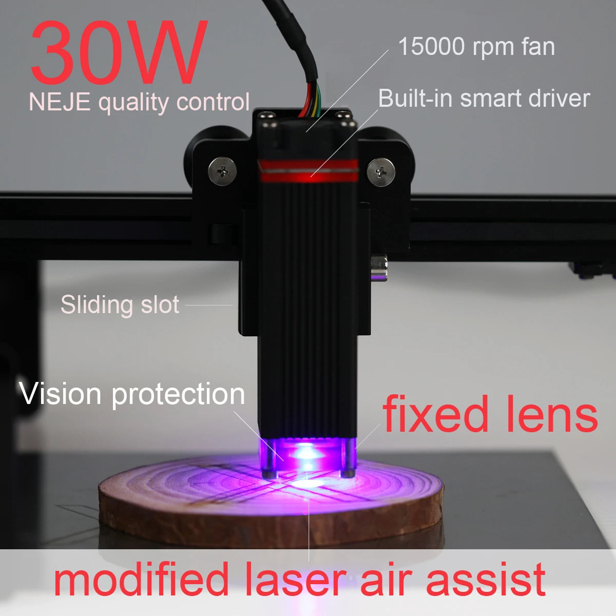 Лазерный модуль имеет входную мощность 30 Вт, оптическую выходную мощность 7,5 Вт, длину волны 445нм ~ 450 нм, защиту зрения, модифицированную лазерную воздушную поддержку и высокоскоростной Вентилятор охлаждения. Отлично подходит для резки и гравировки различных мягких материалов. Особенности: -Предназначено для лазерного гравировального станка. Замена для серии NEJE Master. -Диодный лазер с сисветильник том 7,5 Вт, вход модуля 30 Вт, подходит для гравировки и резки. -Фиксированная Конструкция объектива, не Фокусирующая линза, измените высоту объекта, чтобы изменить расстояние фокусировки. -Защитное стекло для более безопасной и удобной работы, не нужно носить очки. -Модифицированный лазерный воздушный помощник, Избегайте повреждения дыма на линзу, Поддерживайте стабильную оптическую мощность. -Тихий и интеллектуальный привод регулирует скорость вентилятора охлаждения в соответствии с лазерной температурой. -Высокоскоростной охлаждающий вентилятор на 15000 об/мин для более эффективного рассеивания тепла. -Изготовлен из силиконовой смазки для термического контроля температуры. -Гравировка широкого спектра мягких материалов: МДФ/Бальза/бумага/дерево/ткань/пластик/кожа/Фанера/пенопластовая бумага/анодированный алюминий. Примечание: * Работает только с гравером серии Master. * Требуется источник питания 12 В, 3 А, если мощность вашего устройства составляет 7 Вт или 3500 МВт. * Источник питания 12 В, 3 А и очки не входят в комплект. * Нельзя гравировать: металл/стекло/камень/керамика/печатная плата/нержавеющая сталь/отражающий материал/прозрачный материал * При возгорании появится дым. Обратите внимание на то, что дым выхлопает в помещении. * Во время использования Наденьте лазерные очки и не касайтесь лазера прямо глазами и кожей! Технические характеристики: Материал: авиационный алюминий, латунь Цвет лазера: синий Режим охлаждения: Интеллектуальный датчик температуры + вентилятор охлаждения 15000 об/мин Вход модуля: 20-30 Вт Выход оптической мощности: 7,5 Вт (7500 МВт) Длина волны: 445-450 нм Объектив: фиксированный Рабочее напряжение: постоянный ток 12 В, 3 А Входное напряжение: 12 В постоянного тока, 3 А Размер изделия: прибл. 9*3*3 см/3,54*1,18 * 1.18in Размер посылка: 16*11*6 см/6,29*4,33 * дюйма Вес посылка: 400 г/14,1 унции Упаковочный лист: 1*30 Вт лазерный модуль 1 * раздвижной слот 1 * 4-контактный кабель 2 * шестигранный ключ