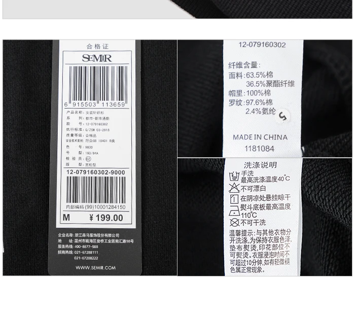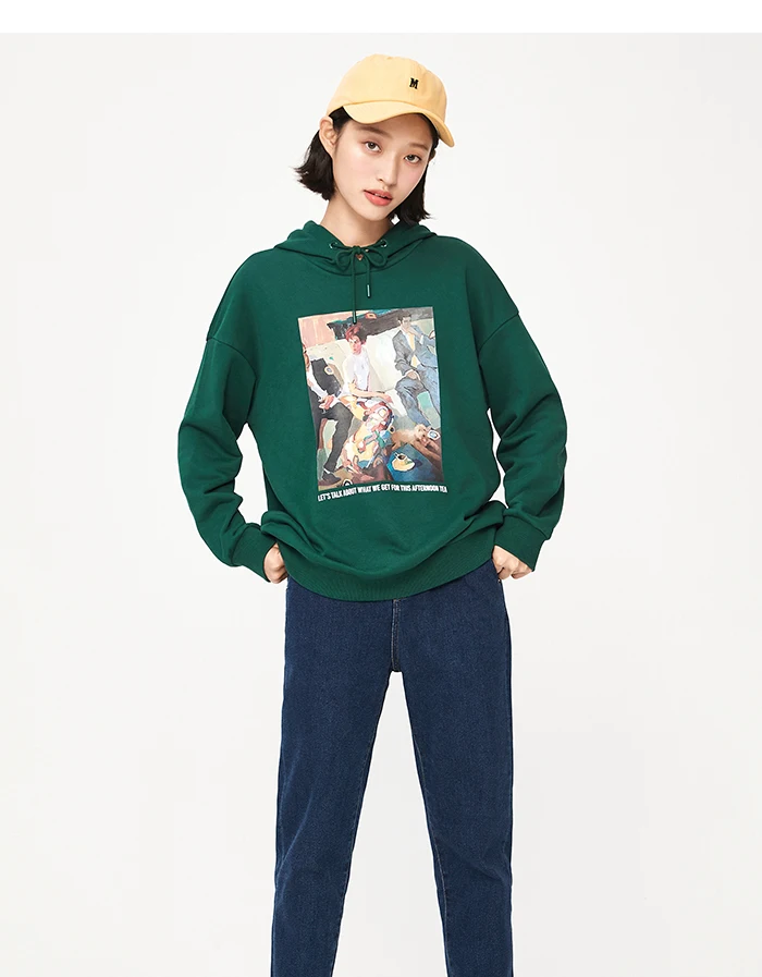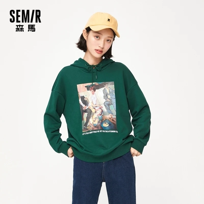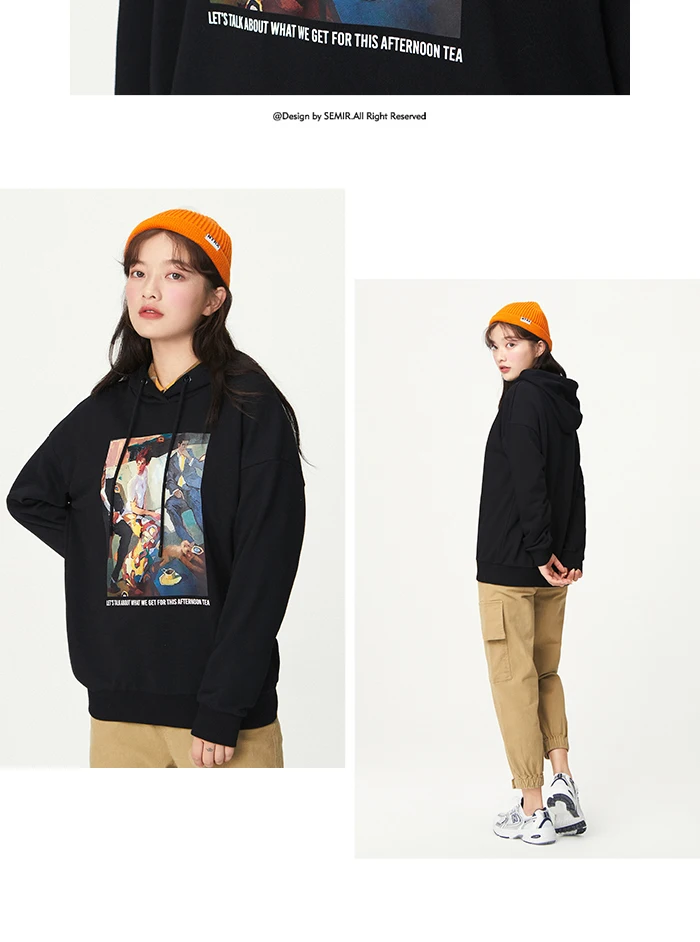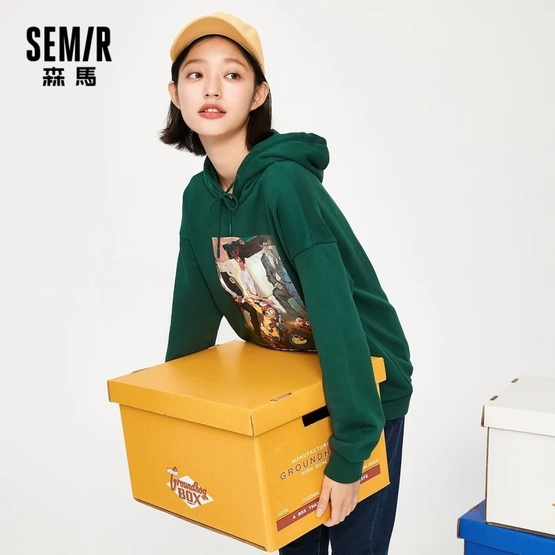 Свитшот SEMIR женский с капюшоном, повседневное свободное худи контрастных цветов с креативным рисунком, осень 2021