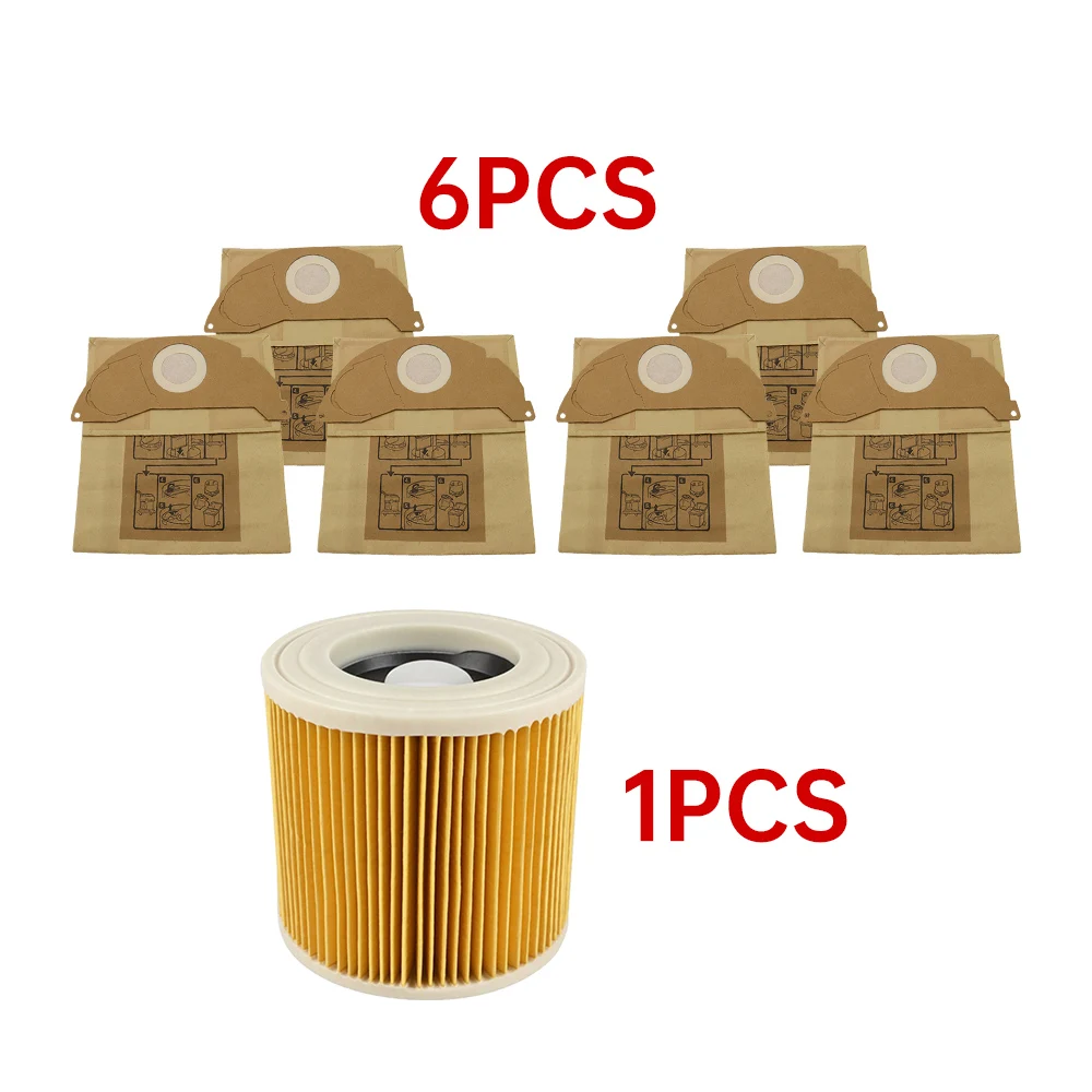 6 шт. бумажных пакетов + 1 шт. пылевых фильтров Hepa для пылесосов Karcher, запчасти, картридж, HEPA фильтр WD2250 WD3.200 MV2 MV3 WD3