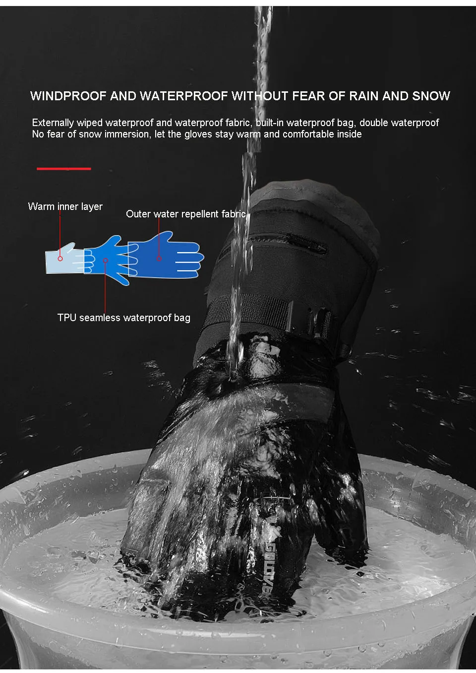 Зимние лыжные перчатки для мужчин и женщин, теплые флисовые перчатки для сноуборда с сенсорным экраном, водонепроницаемые теплые перчатки для катания на лыжах и скейтборде