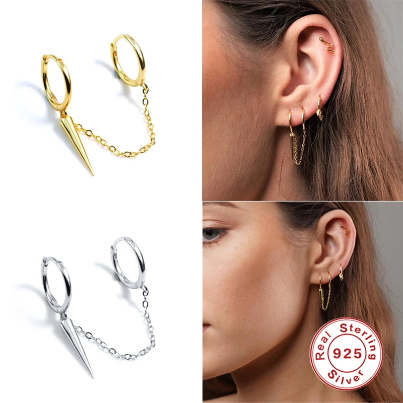 925 стерлингового серебра серьги-кольца ювелирные изделия для женщин цепь двойного износа; Зауженные подвеска, серьги, ювелирное изделие, Kolczyki; Искусственная кожа; Прямая продажа (дропшиппинг); Damskie