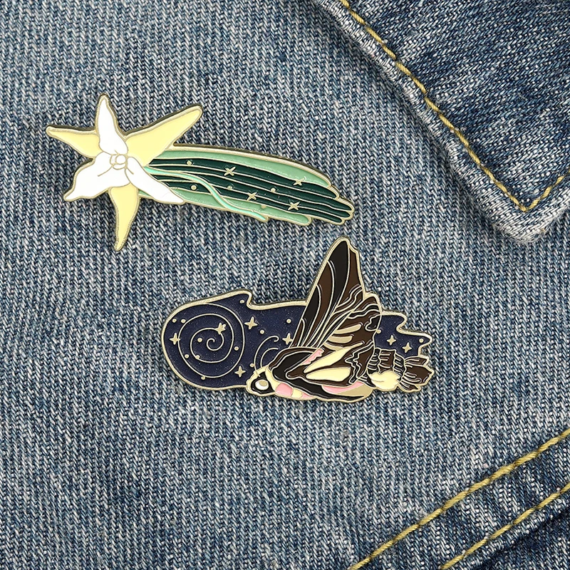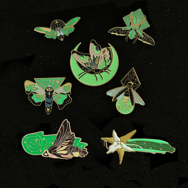 7 стилей эмали штырь пользовательские моли, Бабочка, броши в виде бабочек, насекомых, лунный свет ночью Броши мультфильм значки с животными ювелирные изделия для друзей