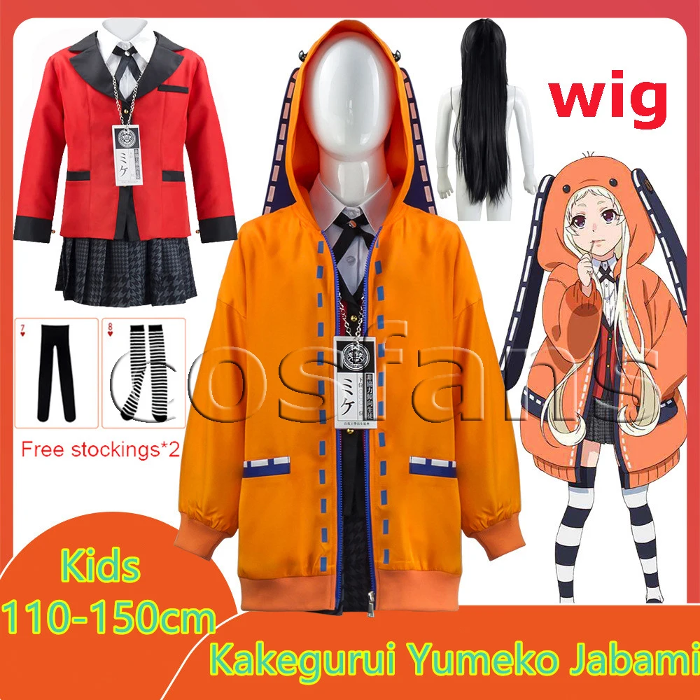 Детские костюмы для косплея из аниме Kakegurui, школьная форма юмэко джабами для японских девочек, комплект из куртки, рубашки, юбки, чулок и галстука