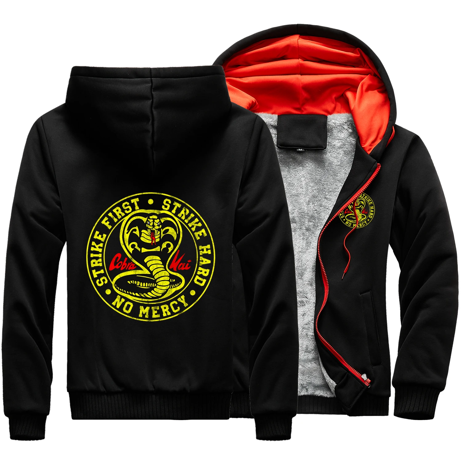 Толстовки с капюшоном и Для мужчин Кобра Кай первый удар сильный удар без милости, зимний свитер с рисунком Для мужчин в стиле панк и капюшоном Для мужчин, негабаритных уличная куртка