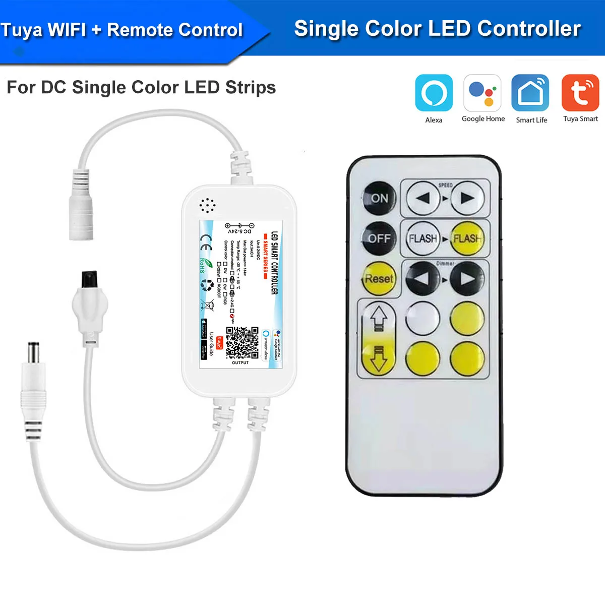 Миниатюрный монохромный контроллер регулировки яркости Wi-Fi tuya, светодиодный контроллер с регулируемой яркостью 5050, контроллер освещения для умного дома с управлением через приложение Echo Google Home