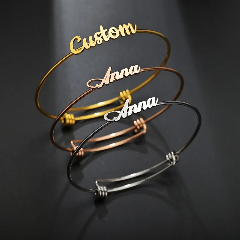 Новый Регулируемый браслет из нержавеющей стали на заказ, персонализированный браслет с именной табличкой и буквами для женщин и девушек, ювелирные изделия, свадебный подарок