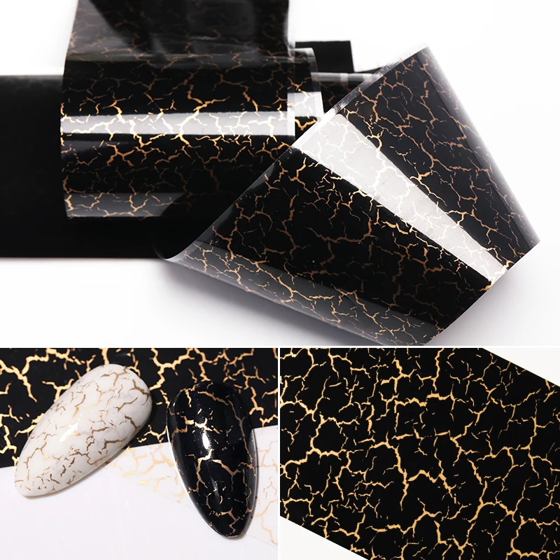 1 рулон, мраморная серия, фольга для ногтей, Черное золото, Перевод...