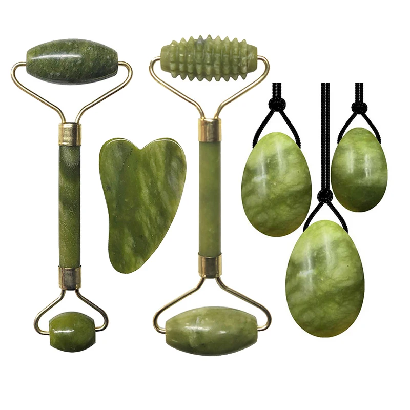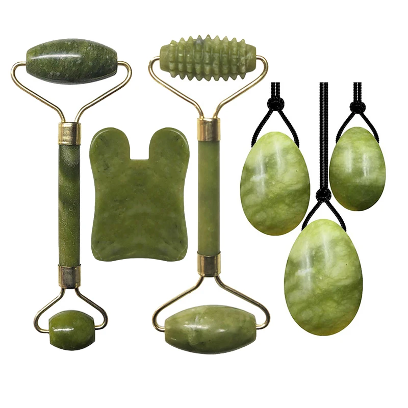 Нефритовый роликовый массажер для лица, скребок гуаша из натурального камня для лица, Йони, яиц, Кегеля, тренажер, массажер для лица, Кристальный ролик