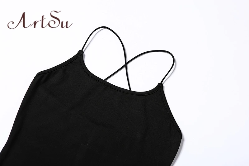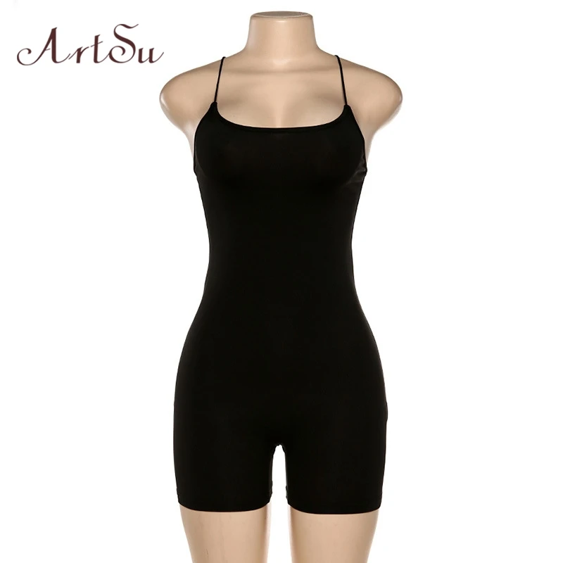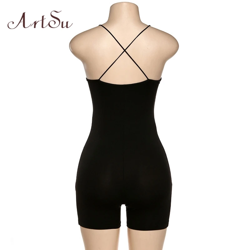 Женский комбинезон без рукавов Artsu, черный облегающий комбинезон на тонких бретелях, модель 2020, 70309