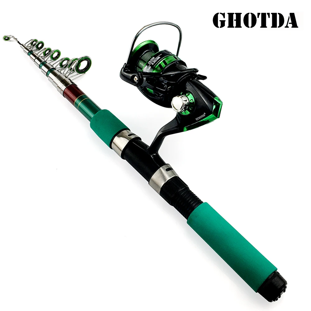 1,82,12,42,73,03,6 м телескопическая удочка с катушкой, полный комплект, удочка, спиннинговая катушка, набор для рыбалки