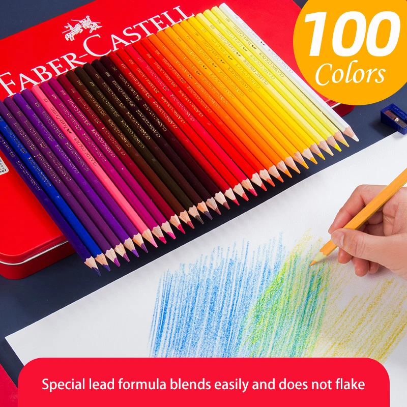 Классические масляные цветные карандаши Faber Castell, оловянный набор, 100 ярких цветов, Рисование для детей и взрослых, книжки-раскраски, рисование