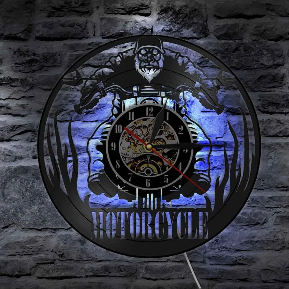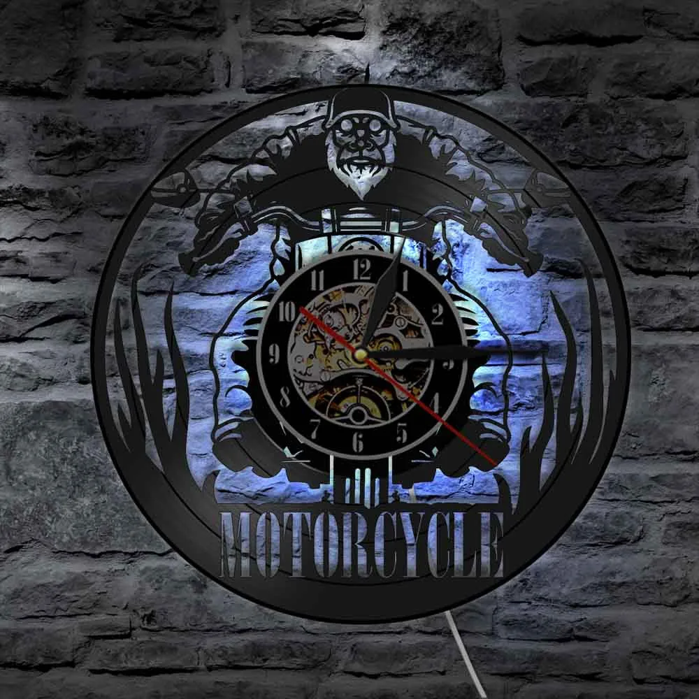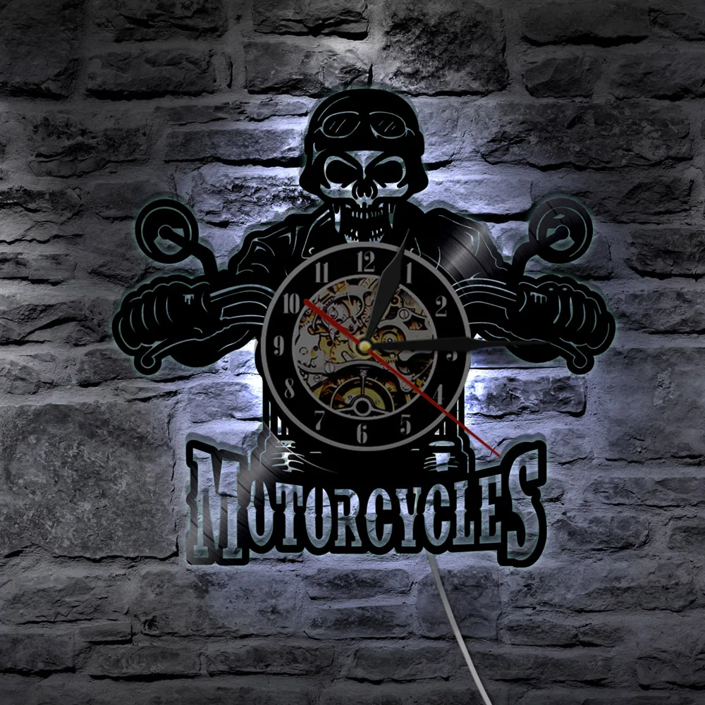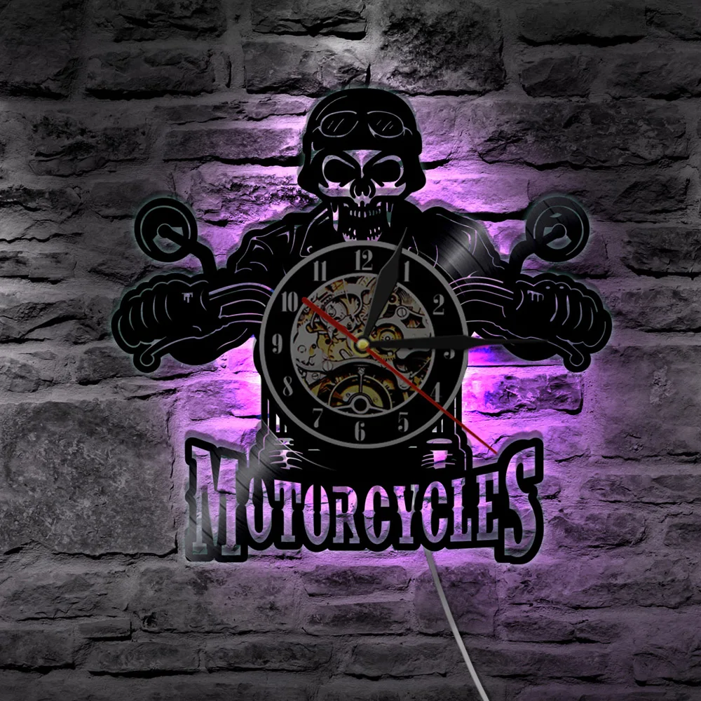 Настенные светодиодсветодиодный часы с черепом, мотоциклетные пинетки с виниловой записью, ночная подсветка, подарок для мотоциклистов