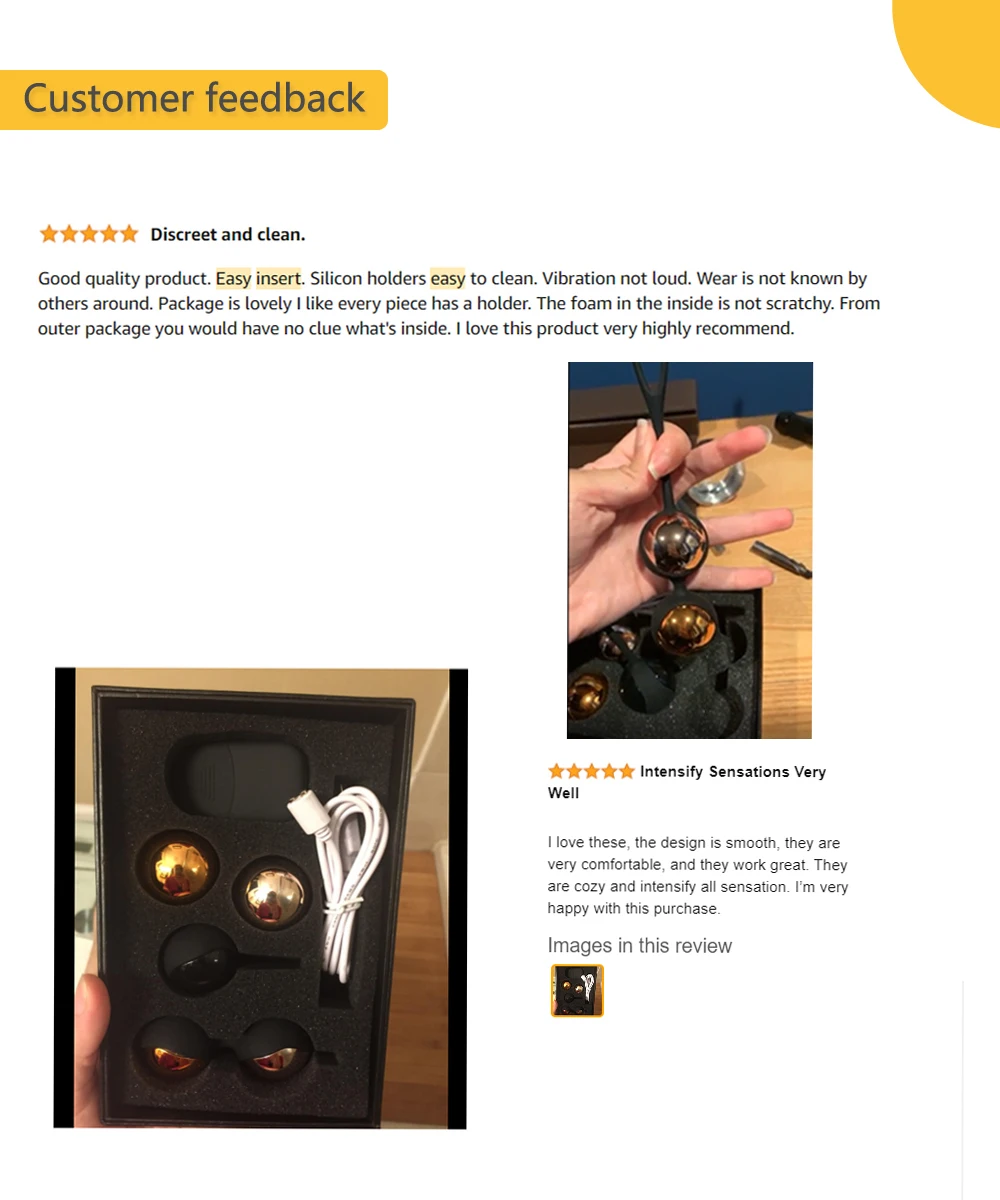 Пришло очень быстро. Красивая коробка, упакованная в пленку. Качество отличное. Пробовала только пока один вибрирующий шарик - особо не ощущается внутри. Заходит хорошо, внутри сидит хорошо, но вот вынимать очень-очень больно, так как шарик для меня большой и приходится вытягивать с силой, теперь мучаюсь.