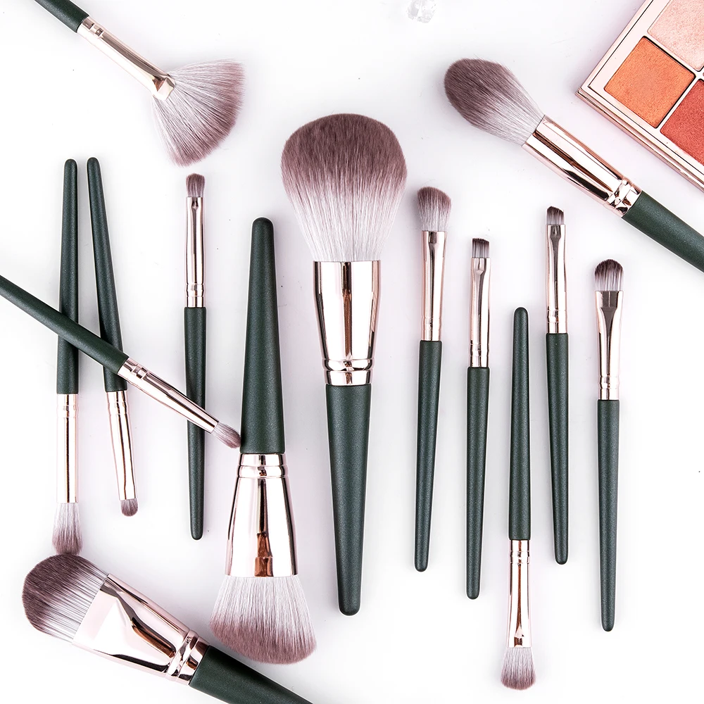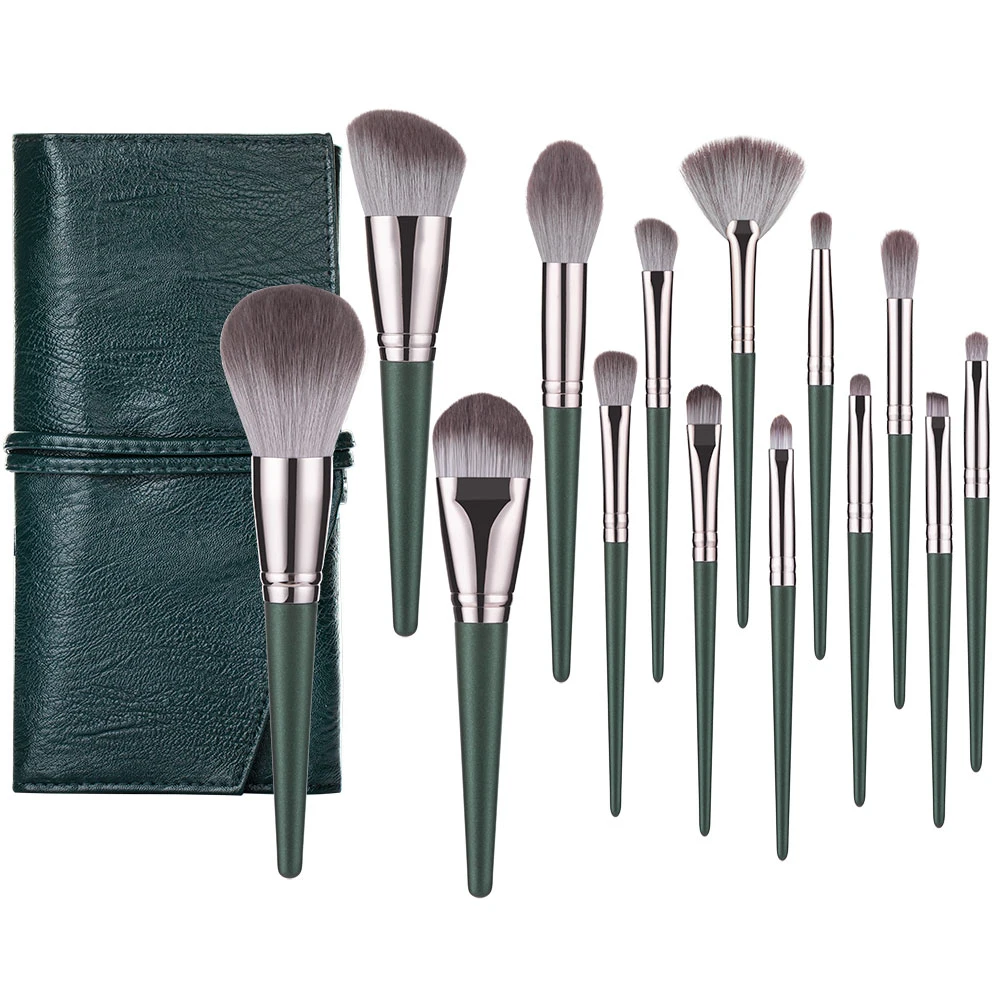 14 штук зеленый наборы кистей для макияжа пудра Румяна Тени для век консилер смешанный деревянный макияж кисть, косметические инструменты Наборы