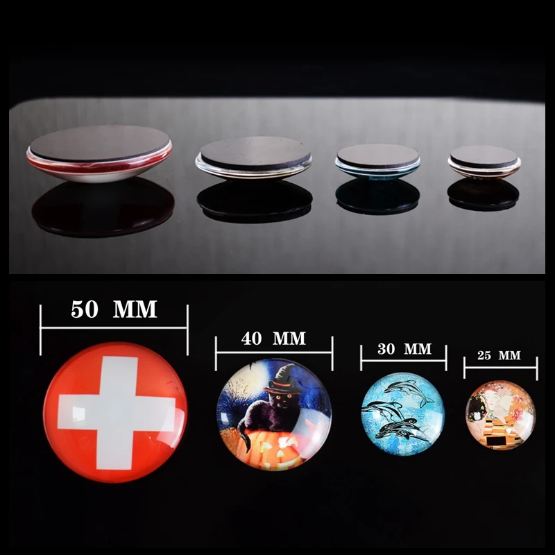 Материал: стекло, магнитДиаметр: 25 мм/30 мм/40 мм/50 ммУпаковка включает: 5 шт. магнит на холодильник/наборСпереди стеклянный кристалл, прозрачный и деликатный.Задняя часть является магнитной наклейкой, которая не удаляет следов