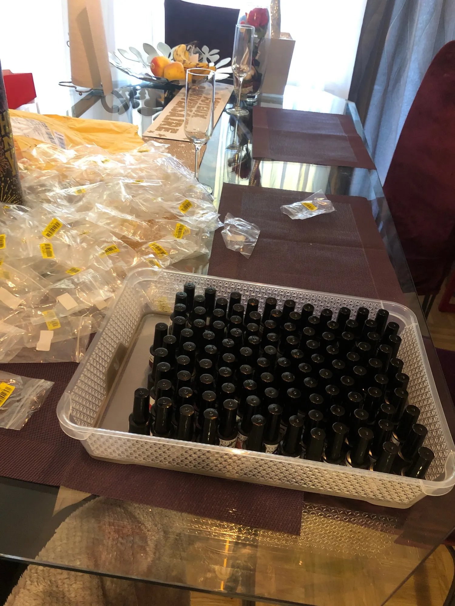 лаки шли долго два месяца, пришли просто в пакете, россыпью но не потекли, все целые, укрывистость плотная.