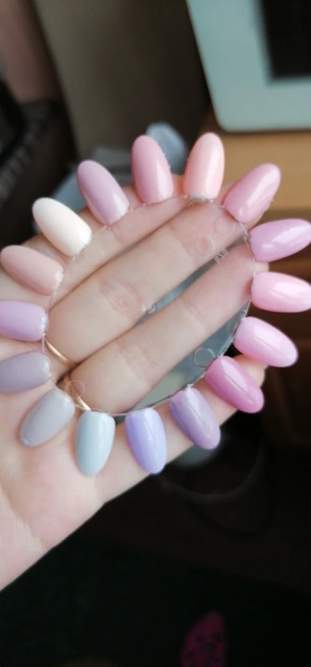 Довольна до безумия! Очень хорошо ложатся, плотные красивые оттенки, желтые правда из-за вредности просушки, лучше красить в 3 тончайших слоя. Заказывала всю политру, а в подарок положили базу и топ, очень приятное дополнение для выкраски палитры. База в виде подложки на типсах, хорошо наносится, самовыравнивается, посмотрим будет ли держаться, не доверяю этим базам и топам, но повторюсь для выкраски пойдёт. Топ не пробовала ещё. Одно но, идёт оооочень долго!!!, не знаю зависит ли от продавца это, но скорее вопросы к почте, потому что на международной почте посылка висела больше одного месяца, кстати посылка отслеживалась, до международке и после, но висела посылка очень долго. В общем все ОГОНЬ!!!