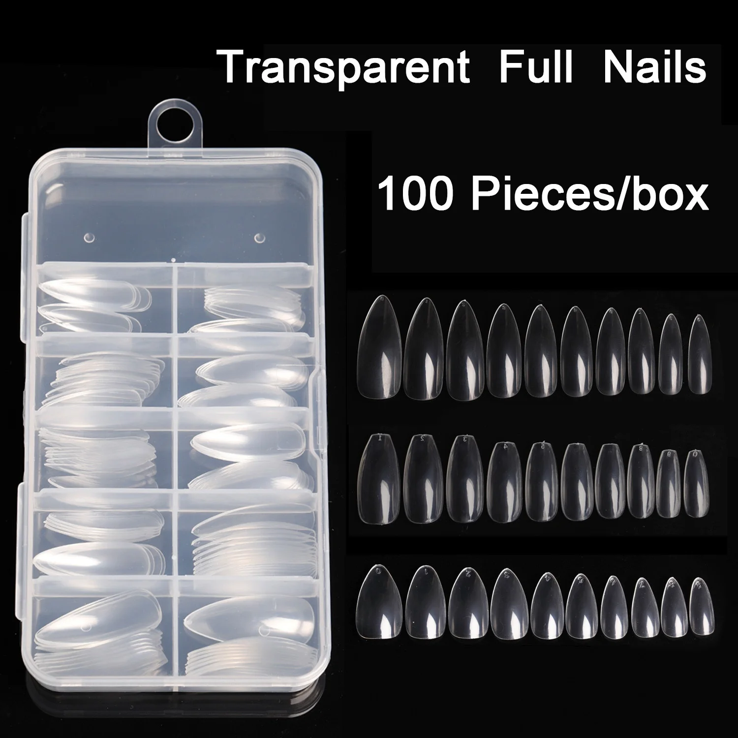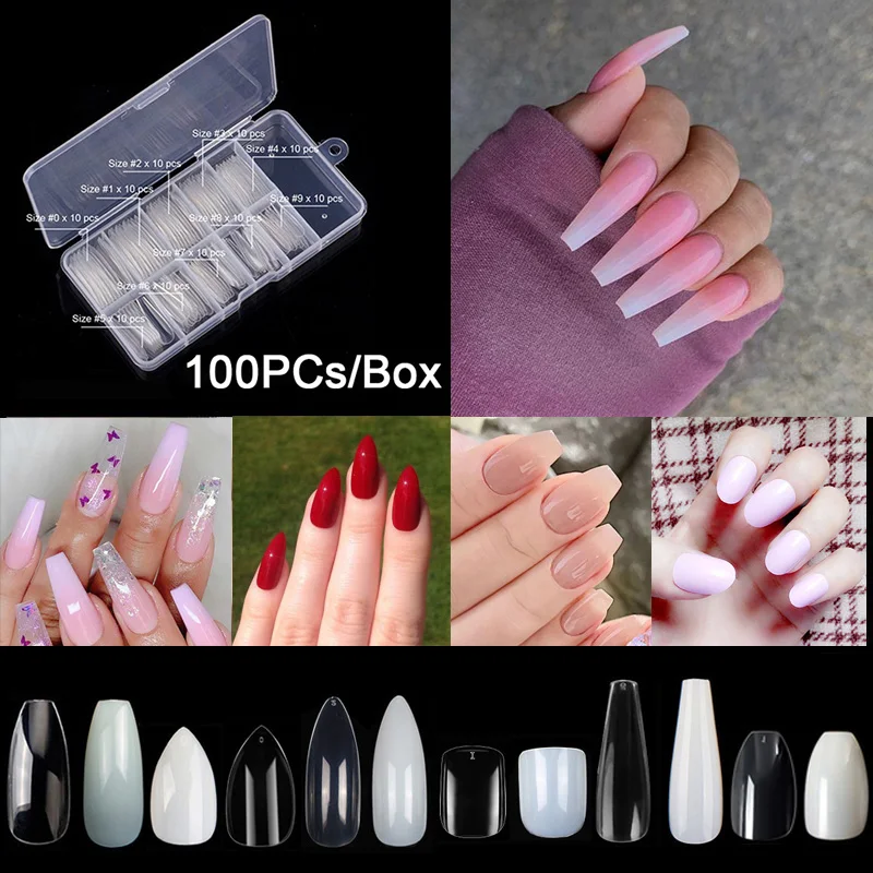 100 шт.кор. полное покрытие накладные ногти гроб накладные ногти средней длины с длинными стилет акриловый маникюр для кончиков ногтей Пресс для ногтей, для нанесения с помощью клея