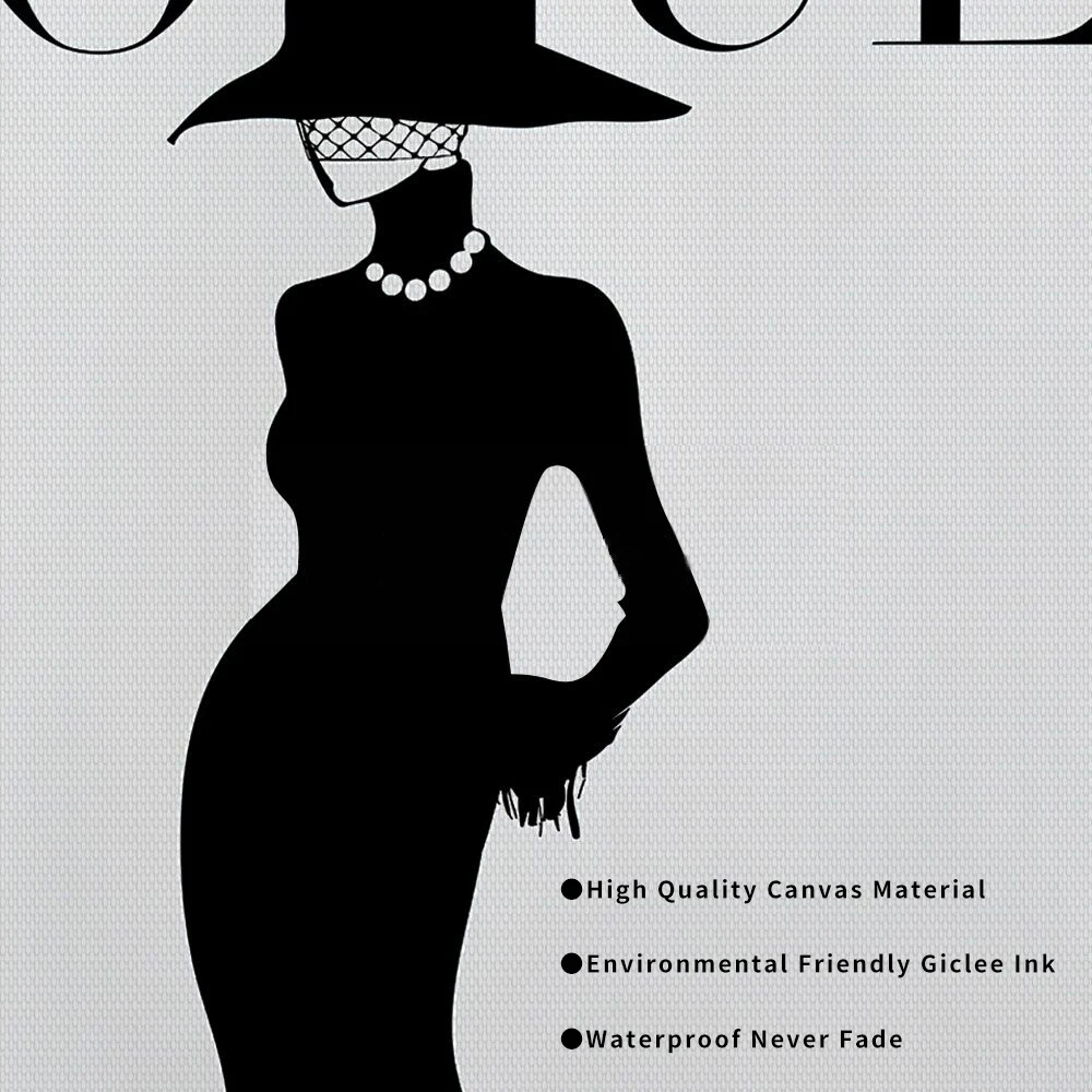 Модная поп-арт Настенная картина Современная черно-белая женщина по...