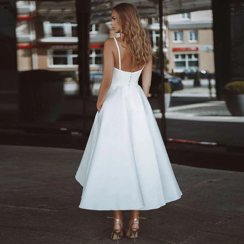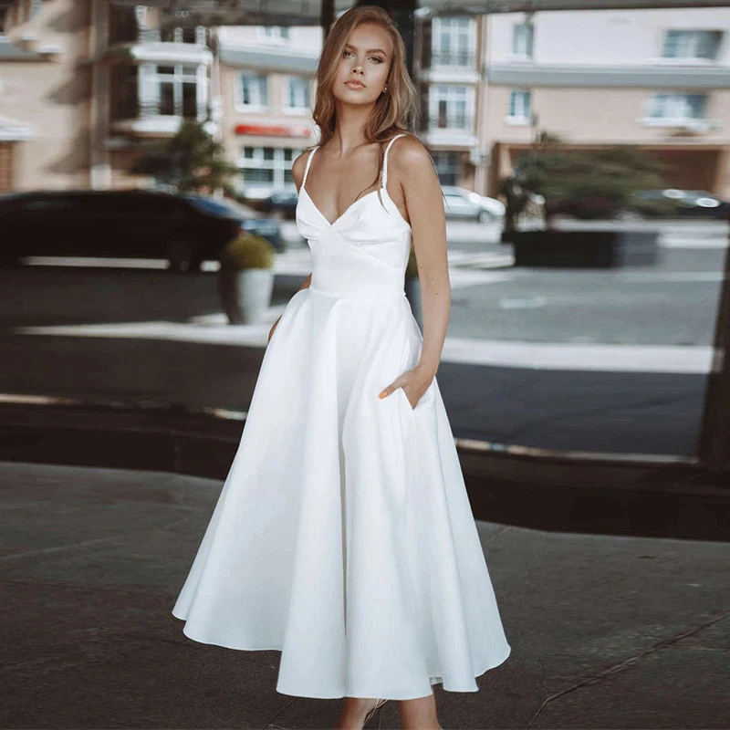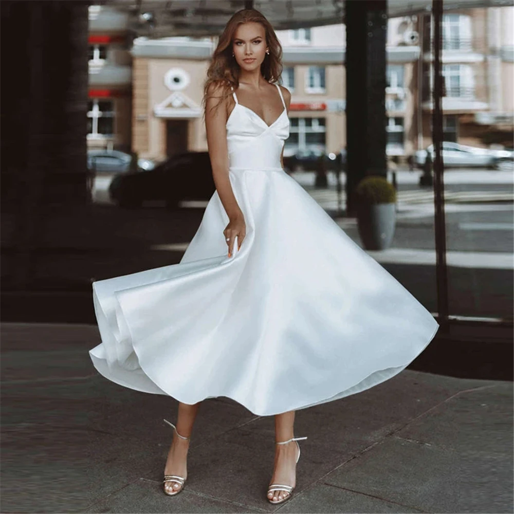 LORIE короткие белые свадебные платья длиной ниже колена с V-образным вырезом пляжные свадебные платья на бретельках с открытой спиной простое платье для деревенской вечеринки