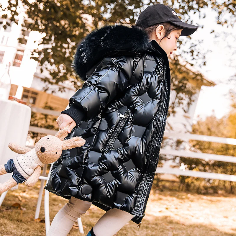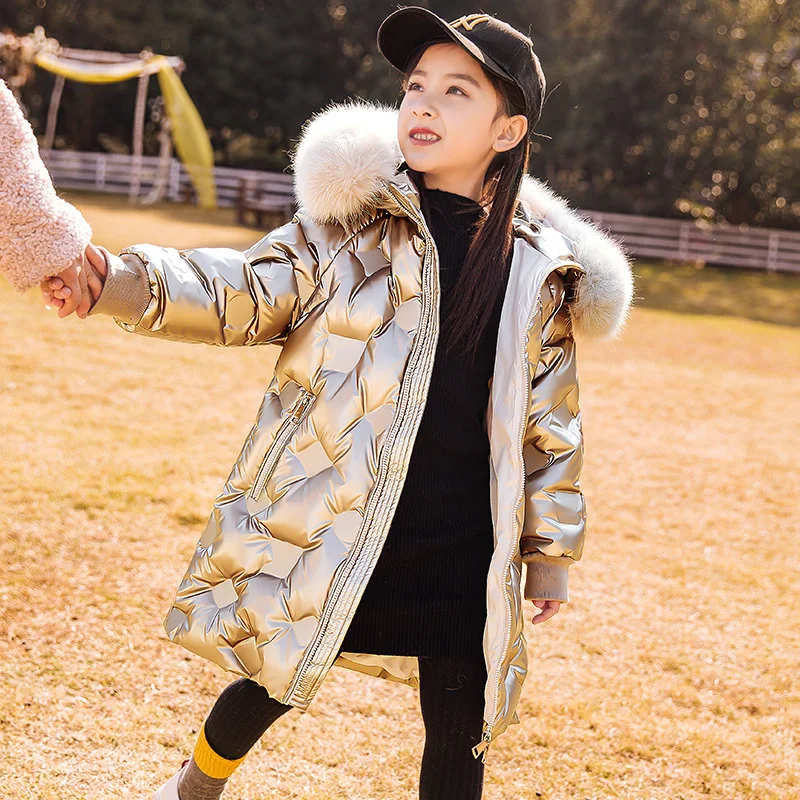 Водонепроницаемая блестящая куртка с капюшоном для девочек, От 5 до 14 лет парка для подростков, Детское пальто, 2020 пуховик для русской зимы