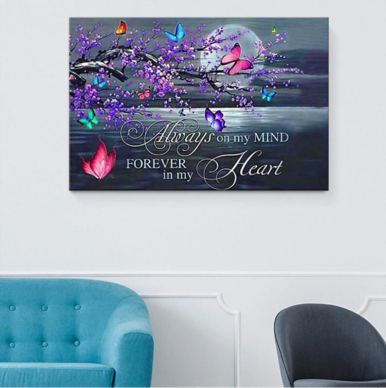 Алмазная краска, Бабочка, сливовый цвет, любовь, луна, текст, алмазная краска, алмазная краска, полностью квадратная, круглая Алмазная вышивка