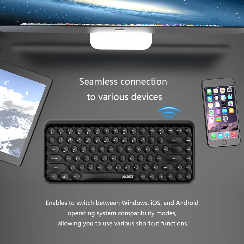 Клавиатура Ajazz 308i Беспроводная мультимедийная с Bluetooth, Классическая игровая клавиатура с круглыми клавишами, 84 дюйма, для Windows, Mac, Android, iOS