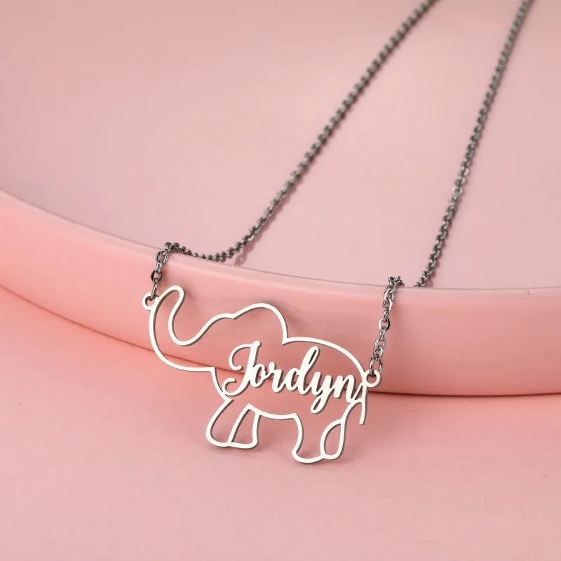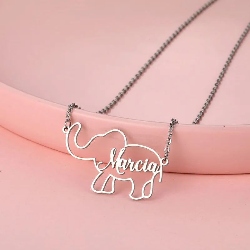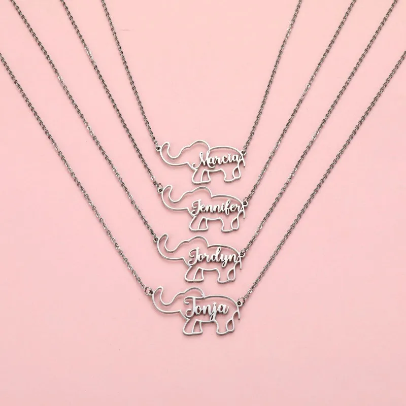 Персонализированные модные милые слон ожерелье ювелирные изделия нержавеющей стали имя кулон для женщин Одежда для маленьких детей, ювелирные изделия в качестве подарка
