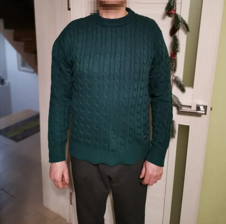 супермягкий, классный тёплый свитер. парню оч понравился. размер на рост 180, вес 100 (качок без пуза) подошёл отлично